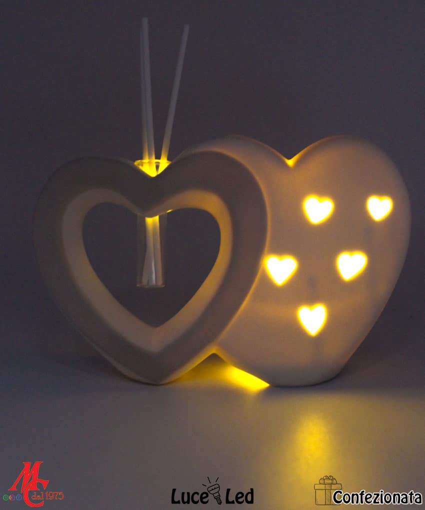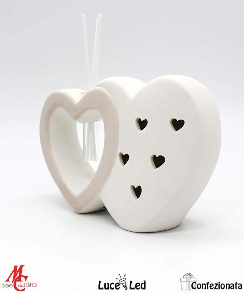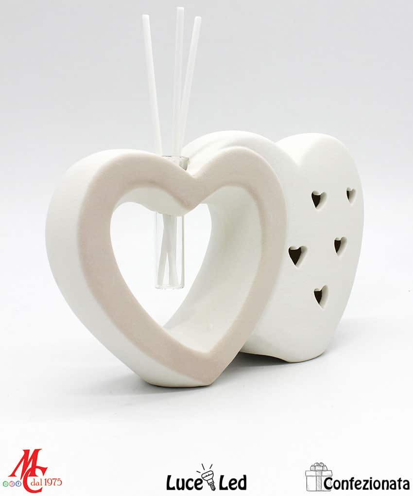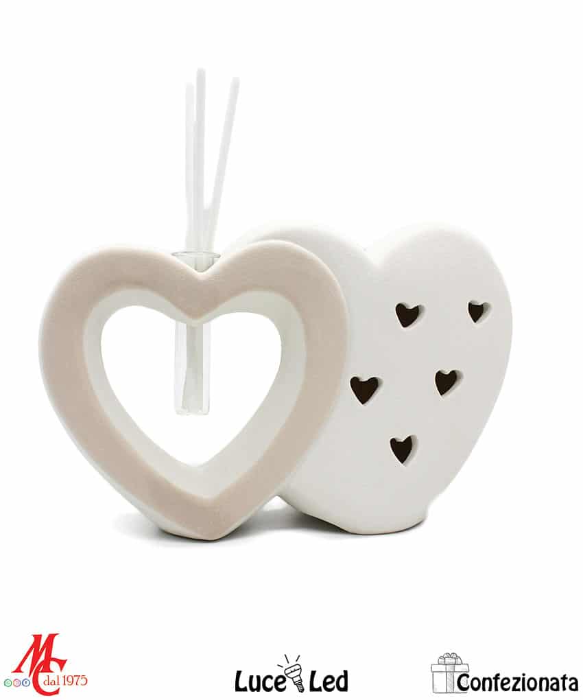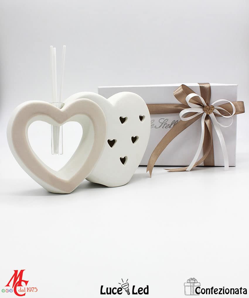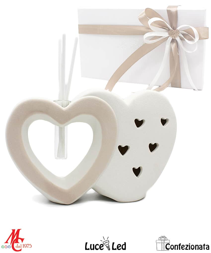 Bomboniera Completa di Confezione – Profumatore Cuori Led – Tortora e Bianchi