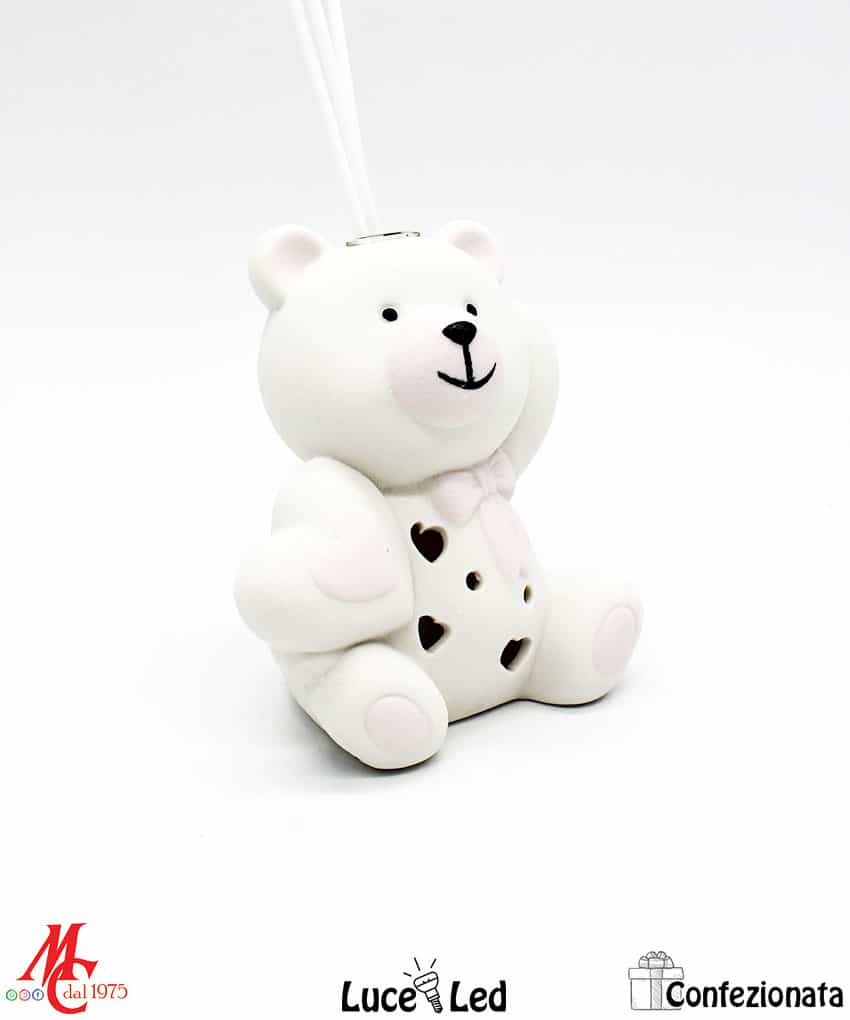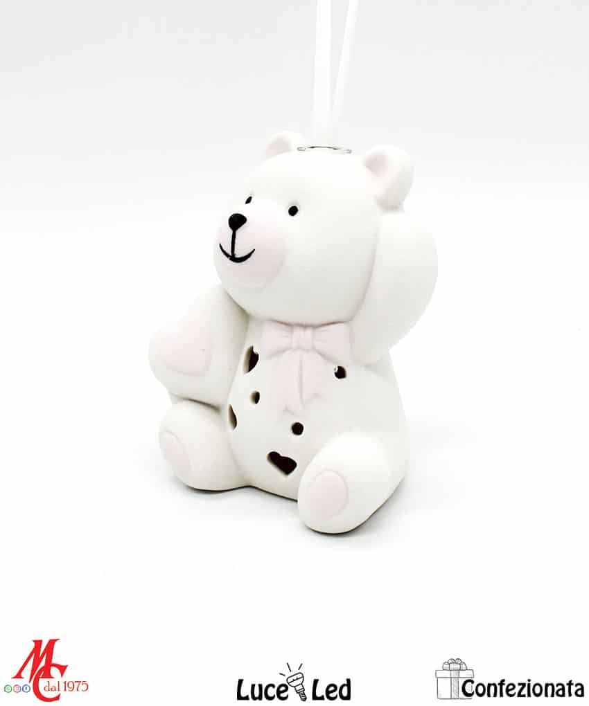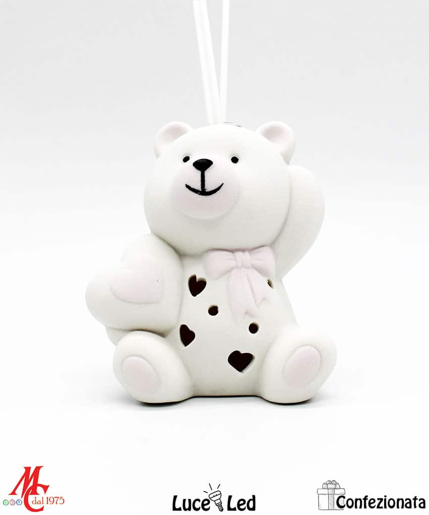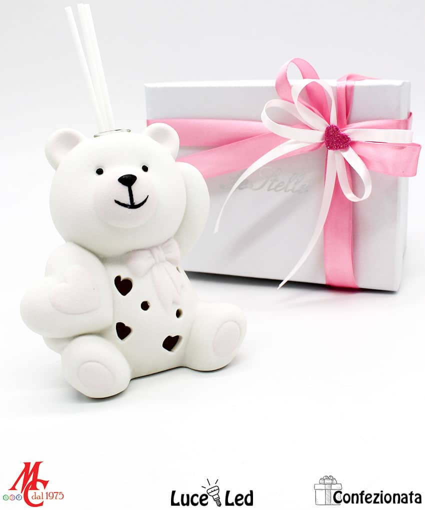 Bomboniera Completa di Confezione – Profumatore Orsetto Cuore Led – Rosa