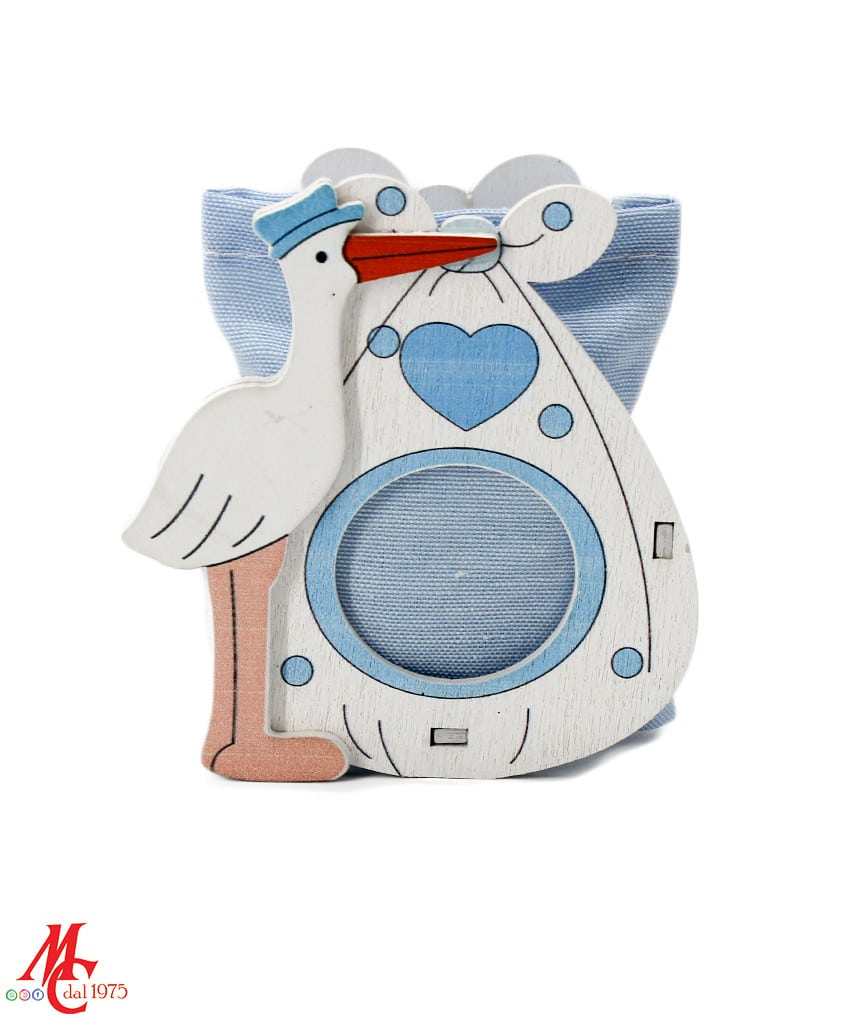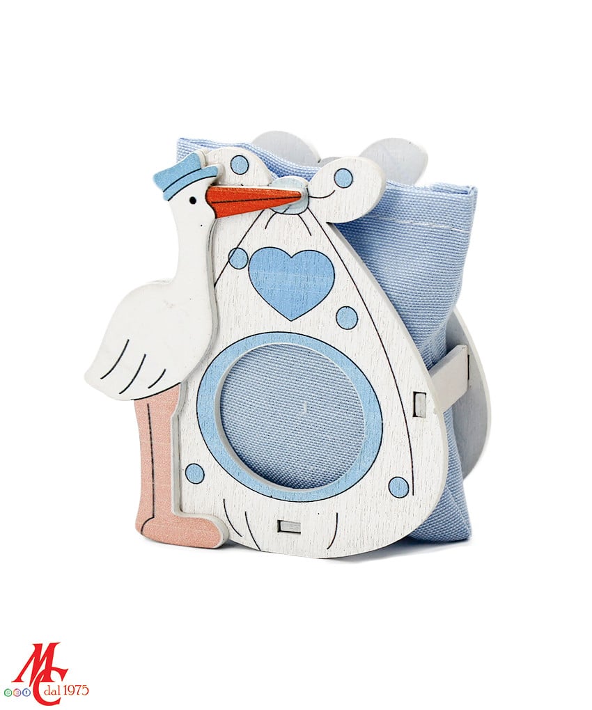 Sacchettino Raso – Cicogna in Legno intagliato – Celeste