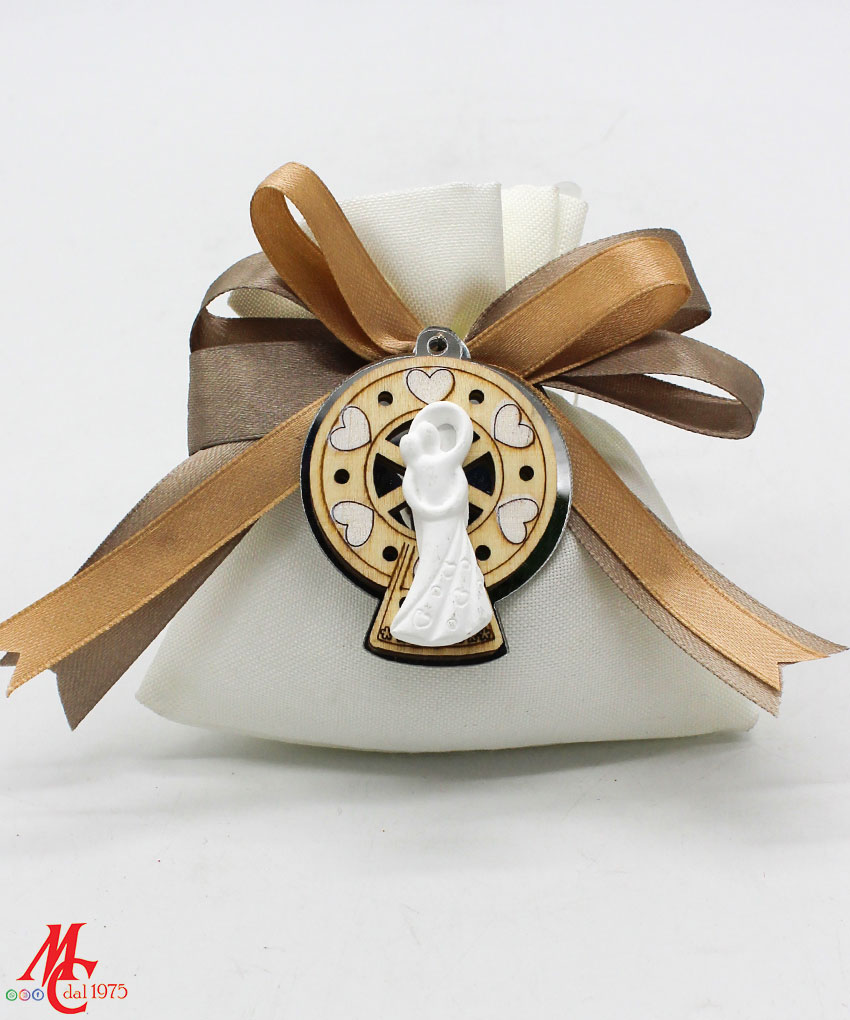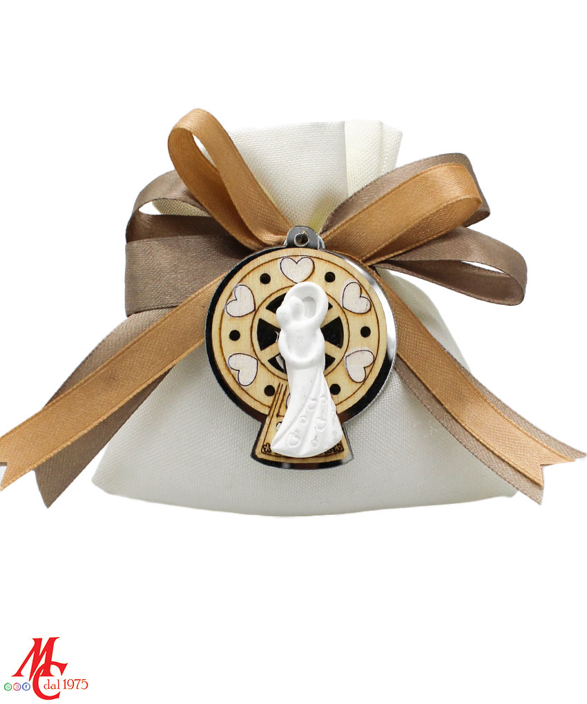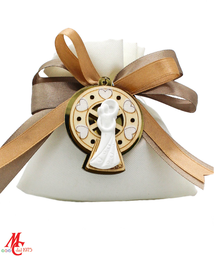Bomboniera / Bustina Matrimonio: Sacchettino con Applicazione Coppia Sposi su Fondo Ruota Panoramica