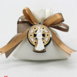 Questa bomboniera è perfetta per aggiungere un tocco di eleganza e romanticismo al vostro matrimonio. Il sacchettino, con dimensioni di 10 cm x 12 cm, è ideale per contenere confetti e piccoli regali, mentre l’applicazione può essere conservata come ricordo del vostro giorno speciale.