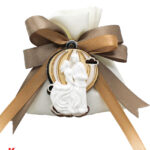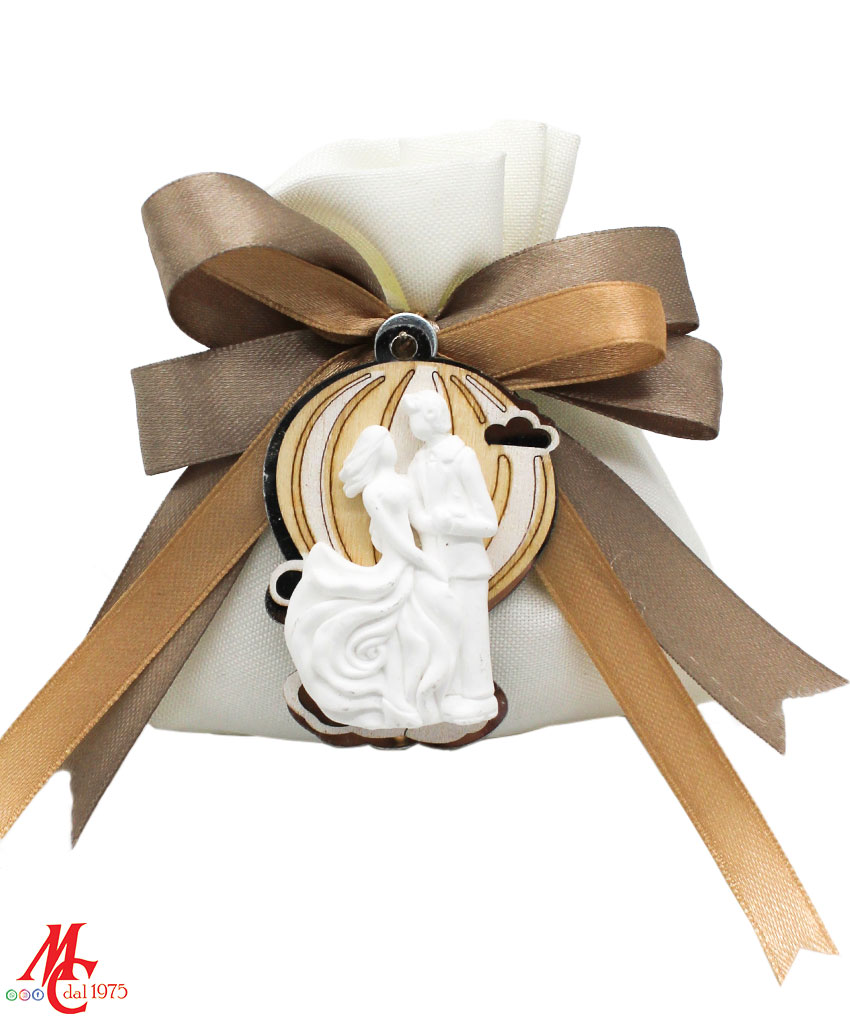 Questa bomboniera è ideale per matrimoni, aggiungendo un elemento decorativo elegante e significativo. Il sacchettino, con dimensioni di 10 cm x 12 cm, è perfetto per contenere confetti e piccoli regali. L’applicazione in legno e plexiglass può essere conservata come ricordo del giorno speciale.