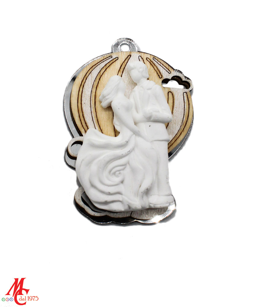 - Design: Applicazione in legno e plexiglass color argento con coppia stilizzata in bianco