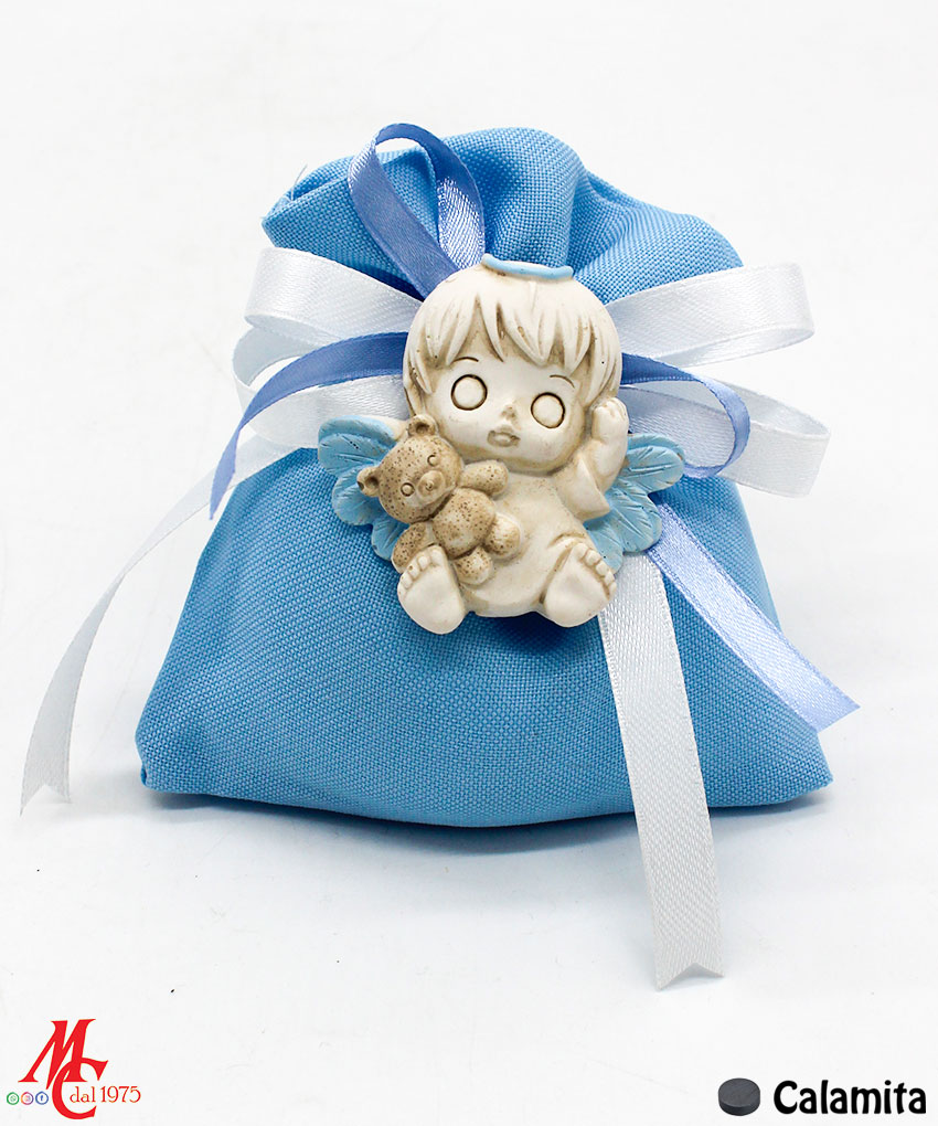 Bomboniera / Bustina: Sacchettino con Applicazione Magnete Angioletto Celeste