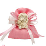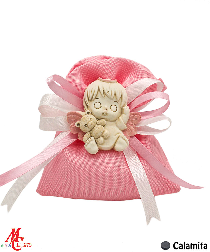 Bomboniera / Bustina: Sacchettino con Applicazione Magnete Angioletto Rosa