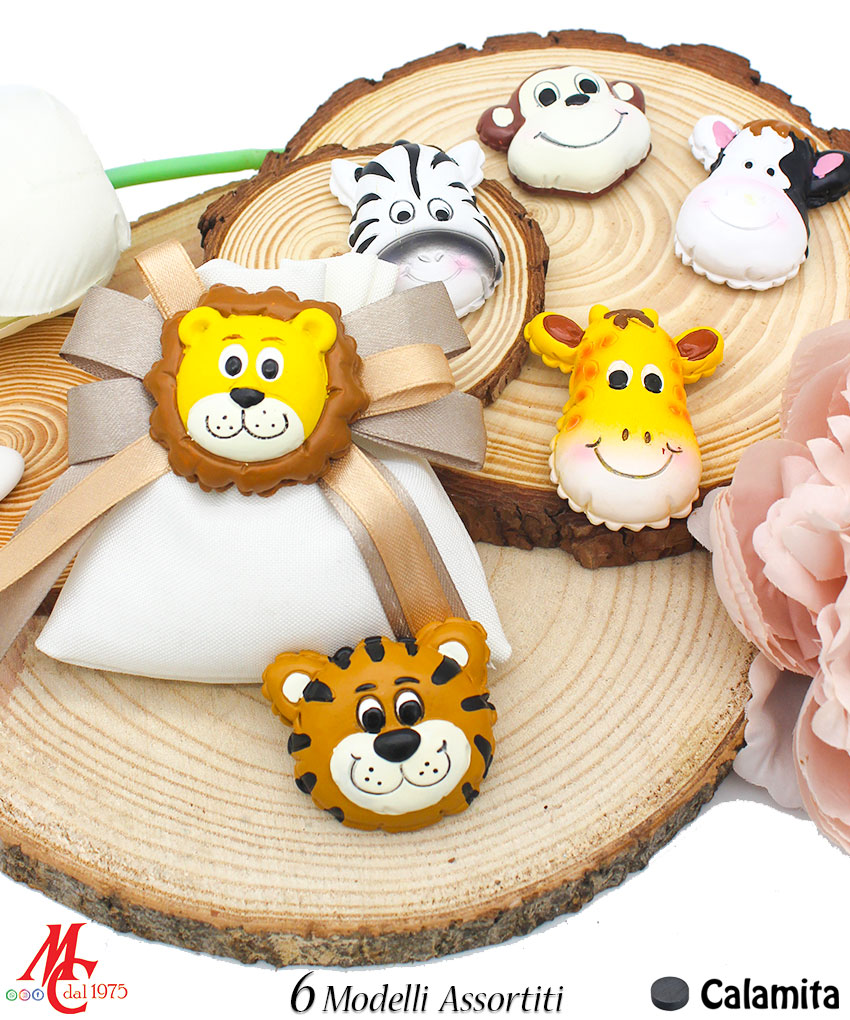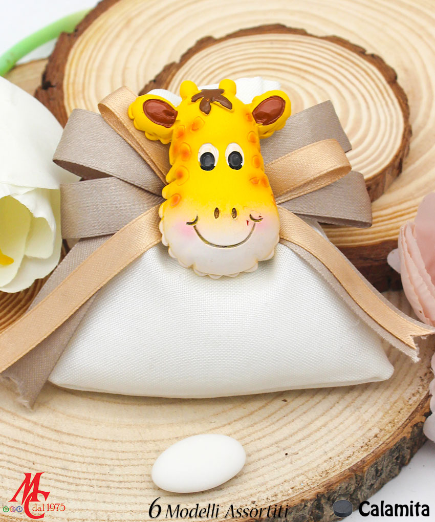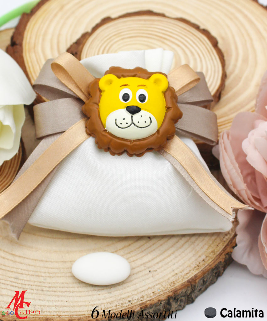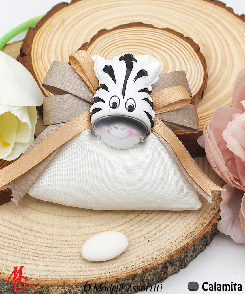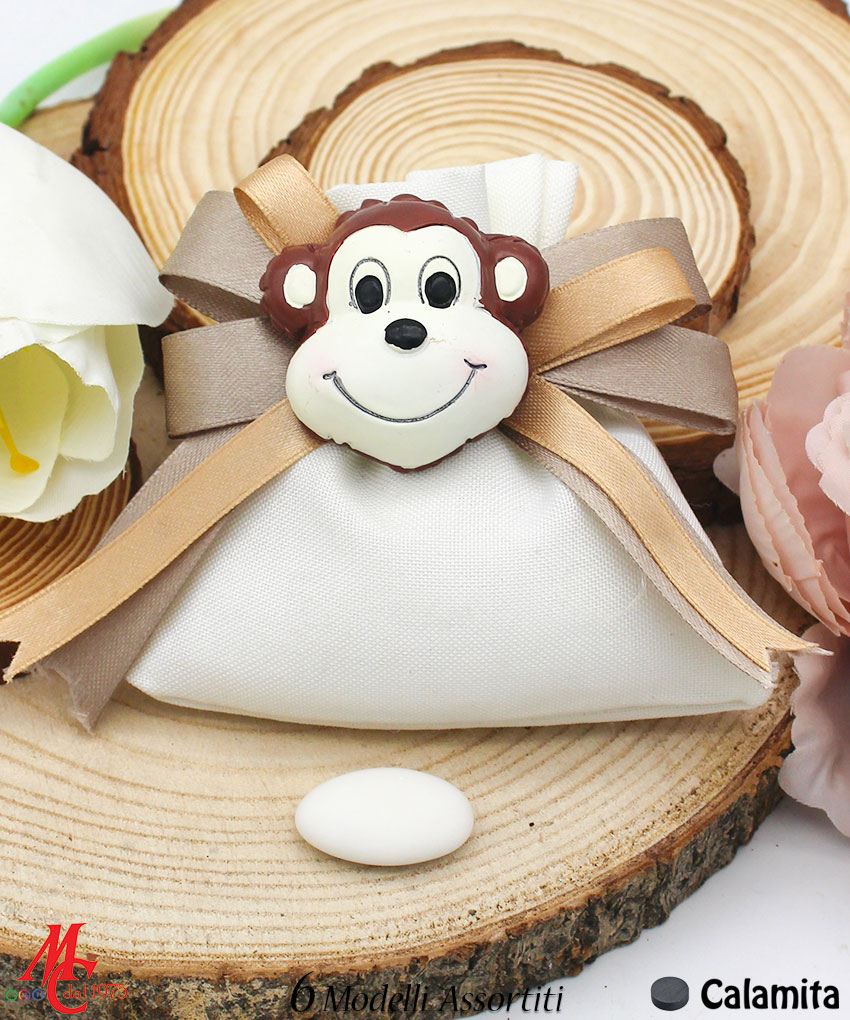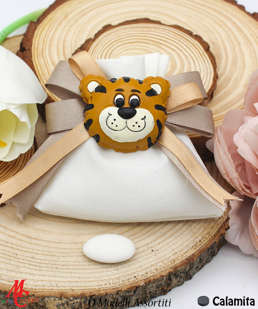 Bomboniera / Bustina Sacchettino con Applicazione Magnete Animali Giungla (6 Modelli Assortiti)