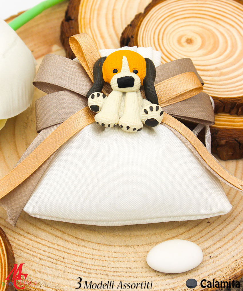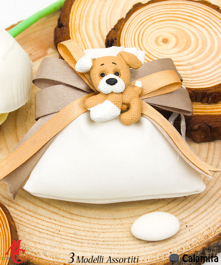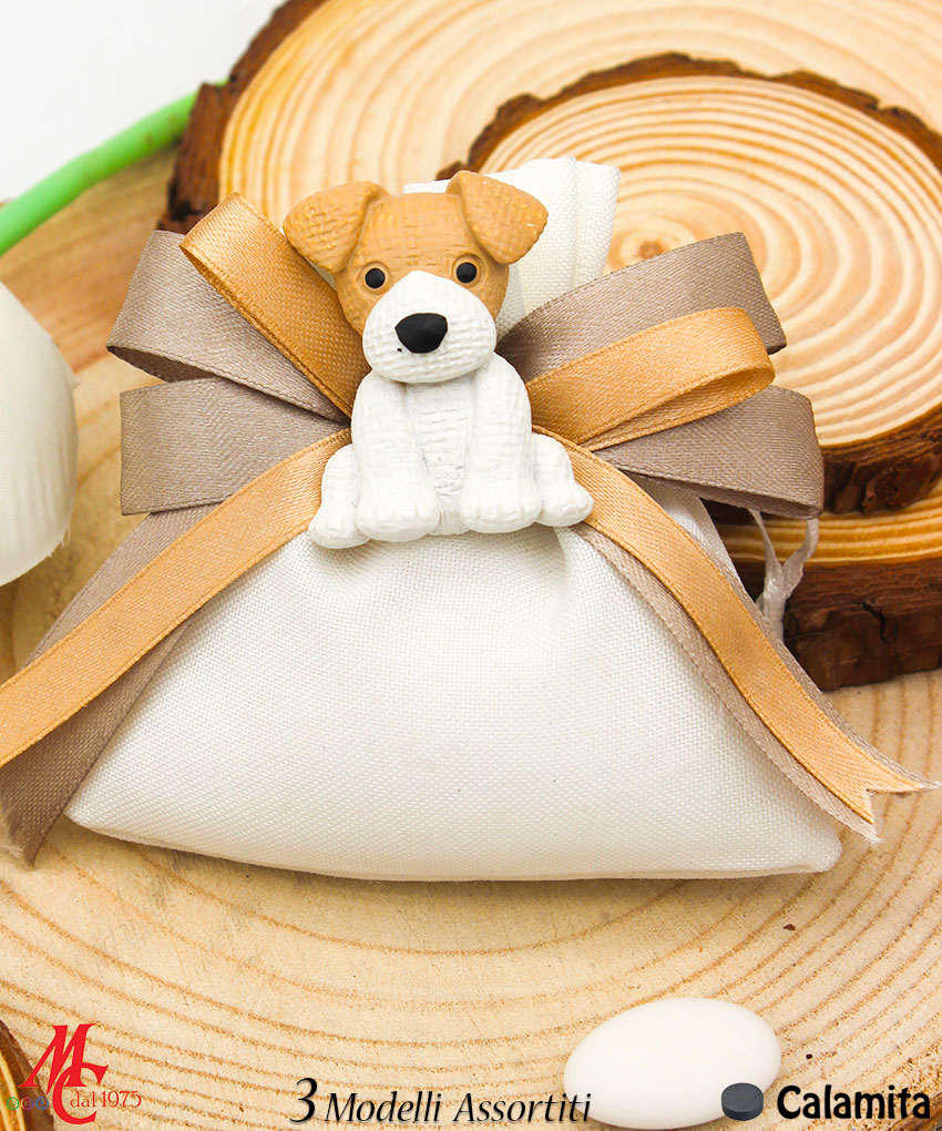 Bomboniera / Bustina – Sacchettino con Applicazione Magnete Cagnolini (3 Modelli Assortiti)
