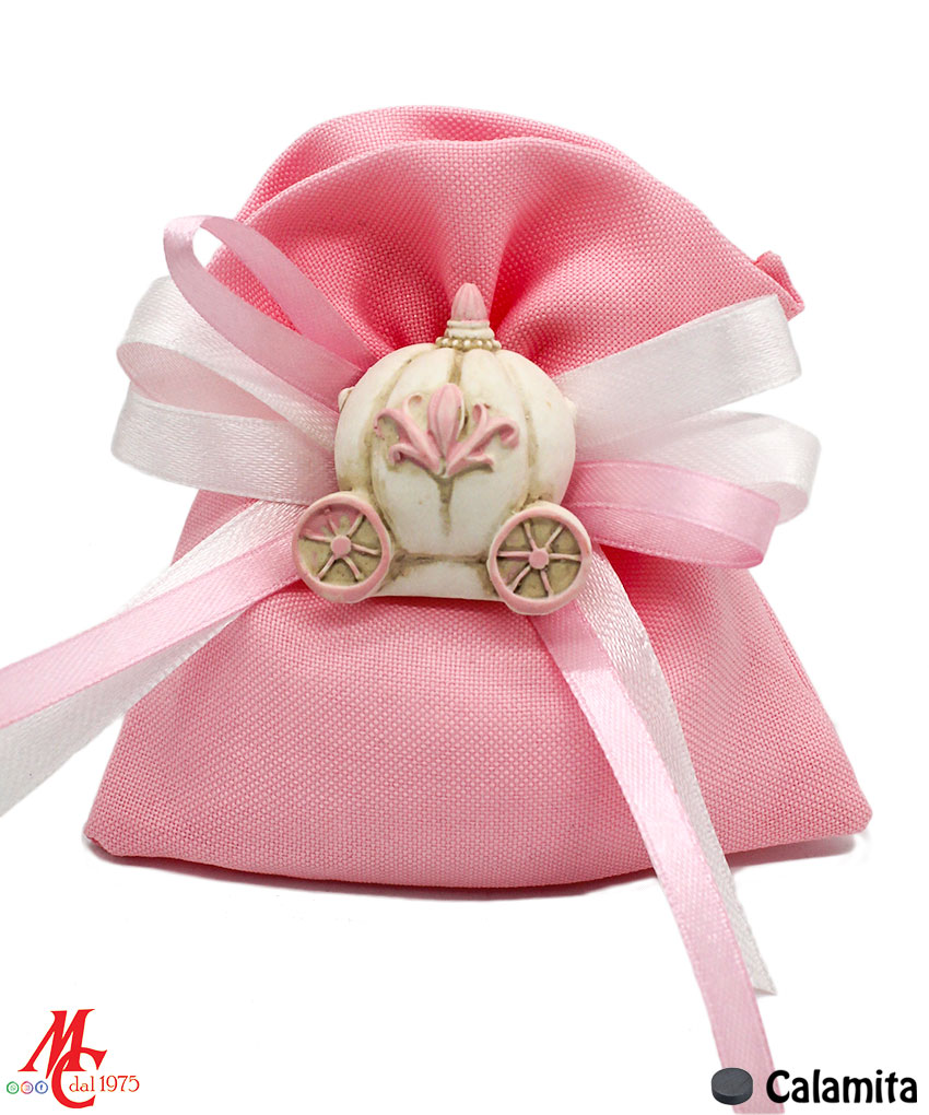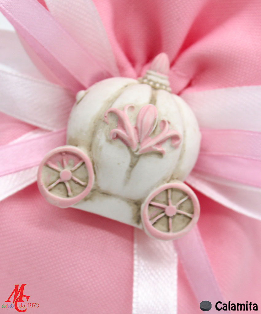 Bomboniera / Bustina: Sacchettino con Applicazione Magnete Carrozza Rosa