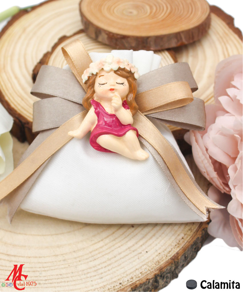Bomboniera / Bustina: Sacchettino con Applicazione Magnete Damine (3 Modelli Assortiti)