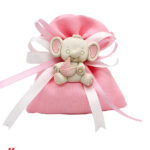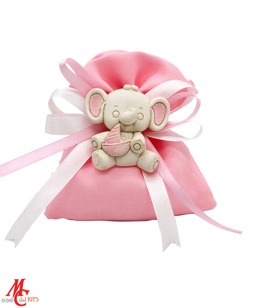 Bomboniera / Bustina: Sacchettino con Applicazione Magnete Elefantino Rosa