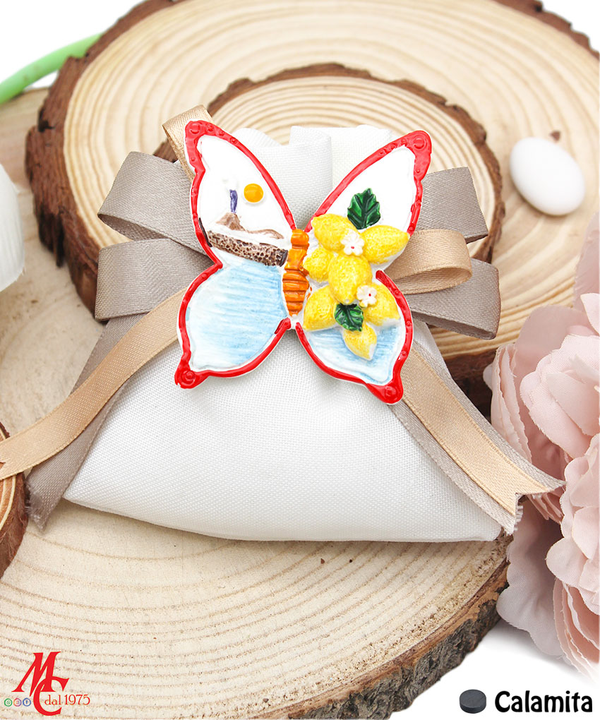 Sacchettino con Applicazione Magnete Farfalla Decoro Paesaggio
