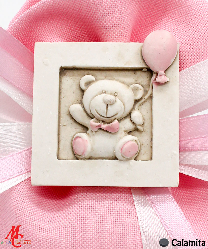 Bomboniera / Bustina: Sacchettino con Applicazione Magnete Orsetto con Palloncino Rosa