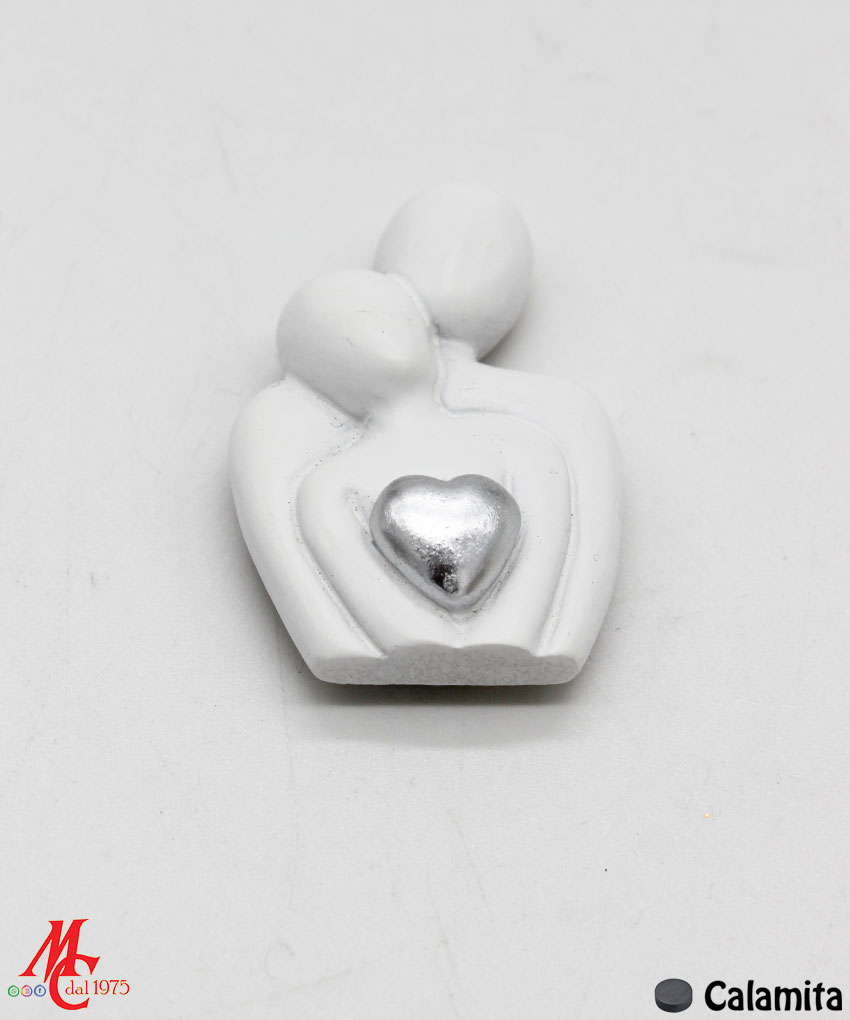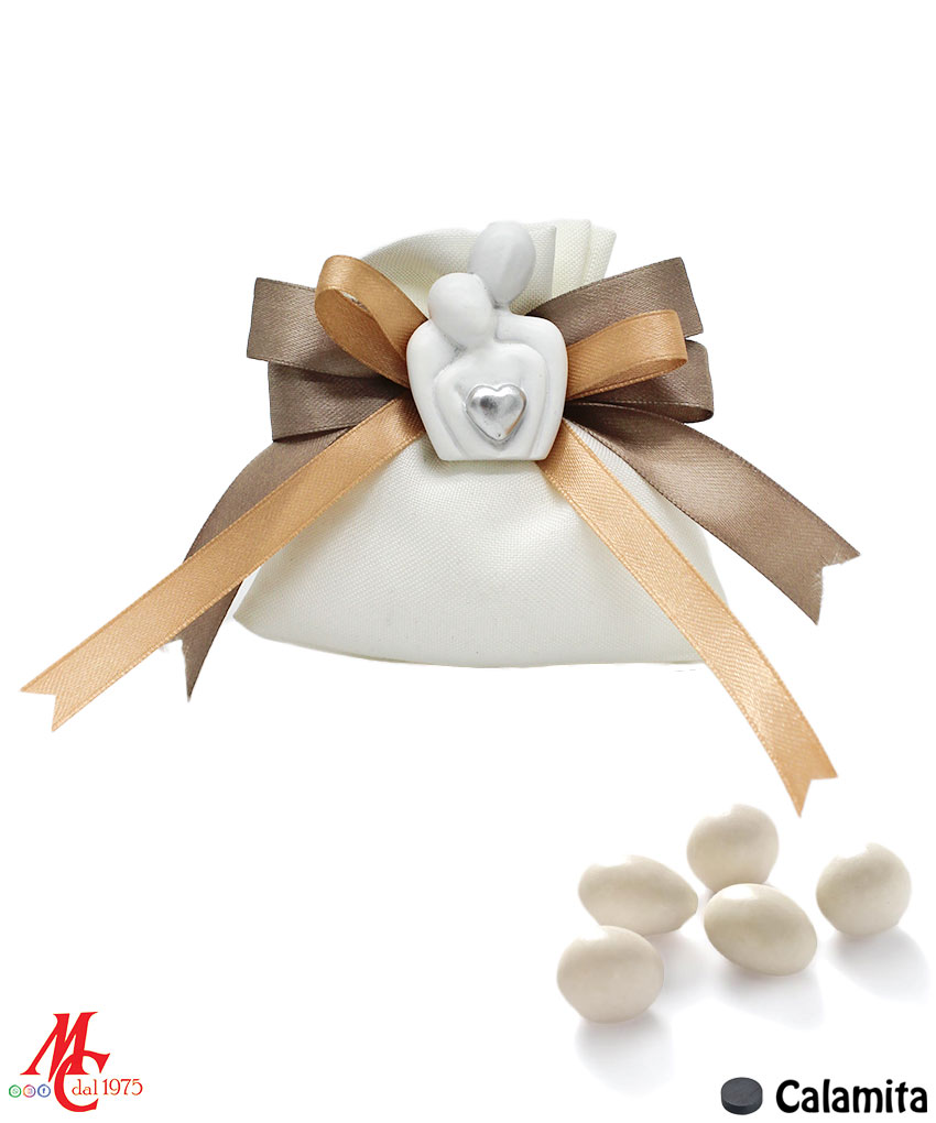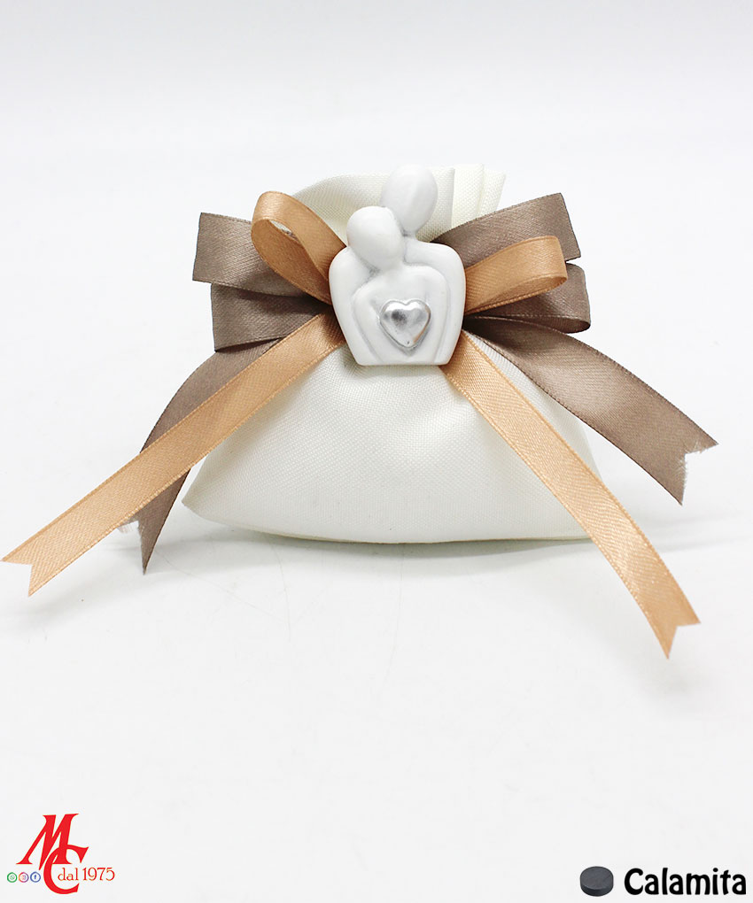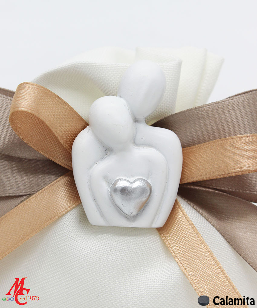 Bomboniera / Bustina Matrimonio: Sacchettino con Magnete Coppia Sposi Cuore Argento