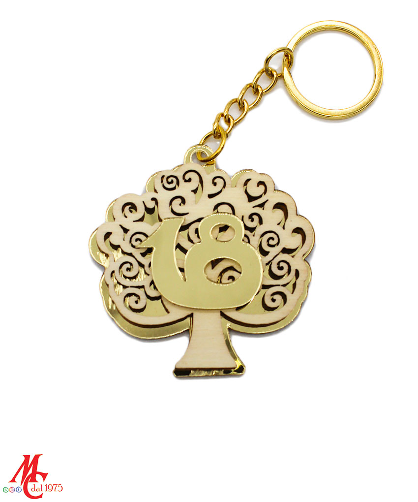 - Accessorio: Portachiavi Albero della Vita in legno con numero 18 in plex oro