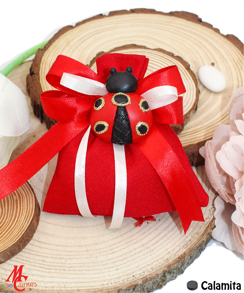 Bomboniera / Bustina Laurea: Sacchettino con Applicazione Magnete Coccinella Portafortuna