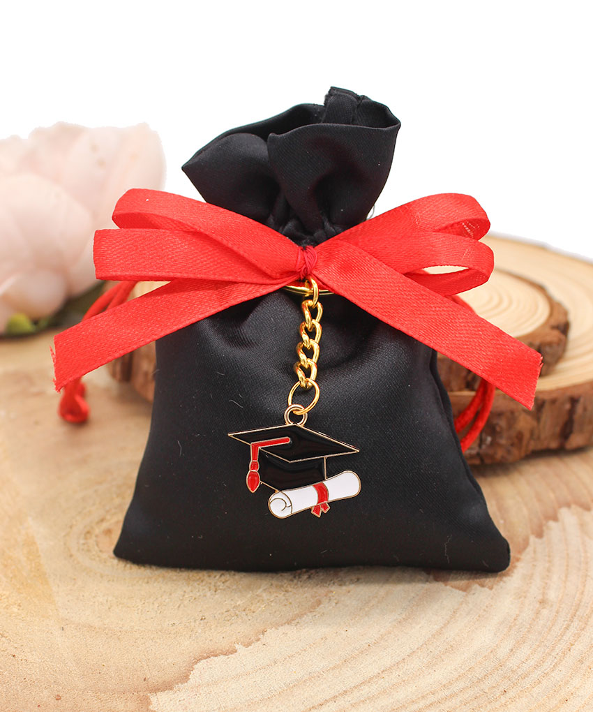 ✔ Design elegante: Sacchetto in tessuto nero con un raffinato portachiavi tocco (cappello da laurea) in metallo, che rappresenta il simbolo della laurea.