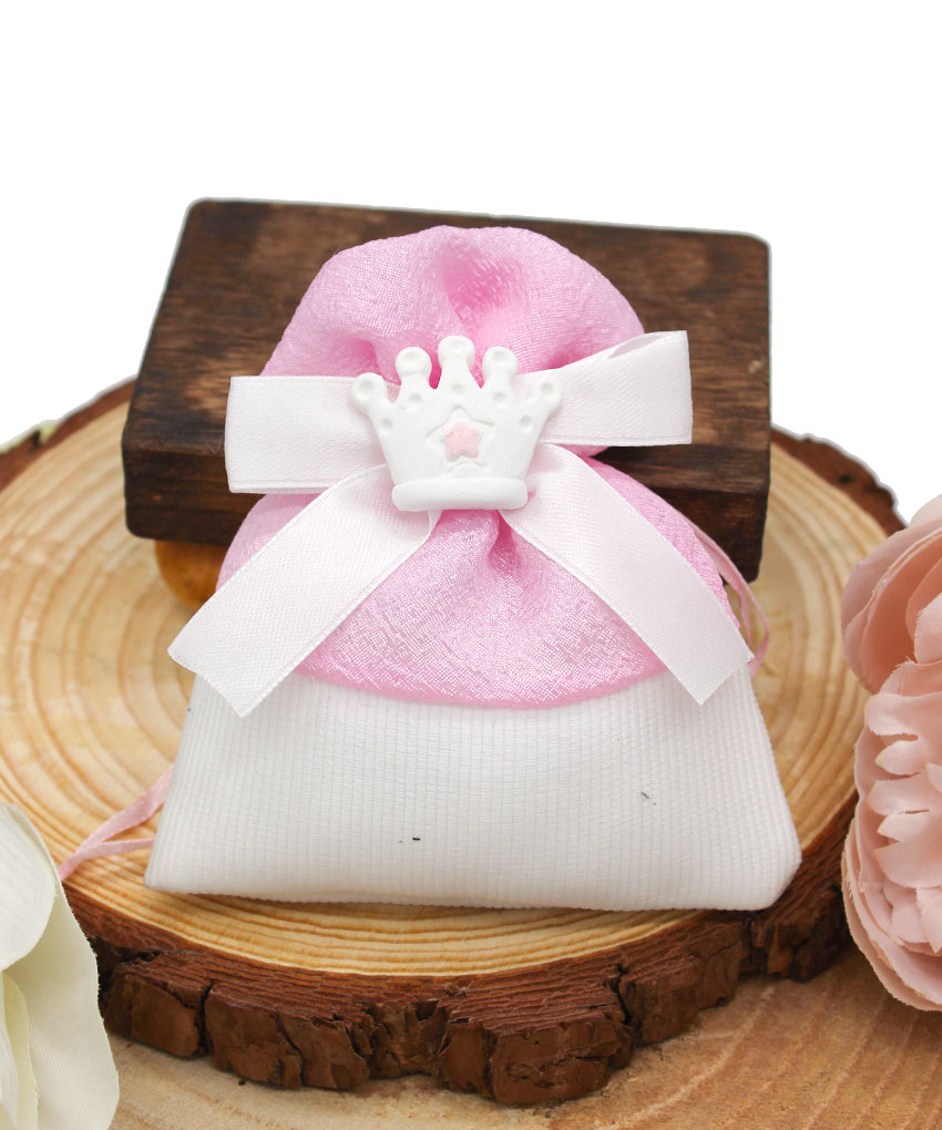 Porta un tocco di eleganza e dolcezza al tuo evento con i nostri sacchettini nascita. Ordina ora il tuo sacchettino Rosa o Celeste con gessetto corona e sorprendi i tuoi ospiti!