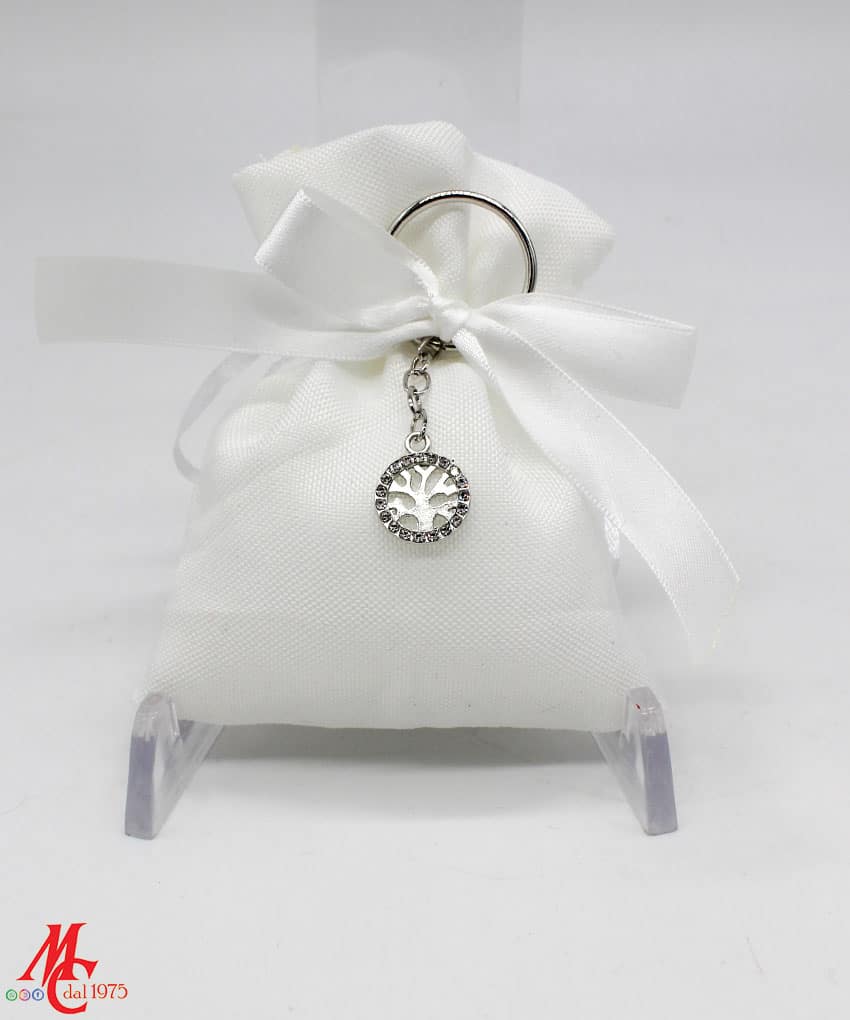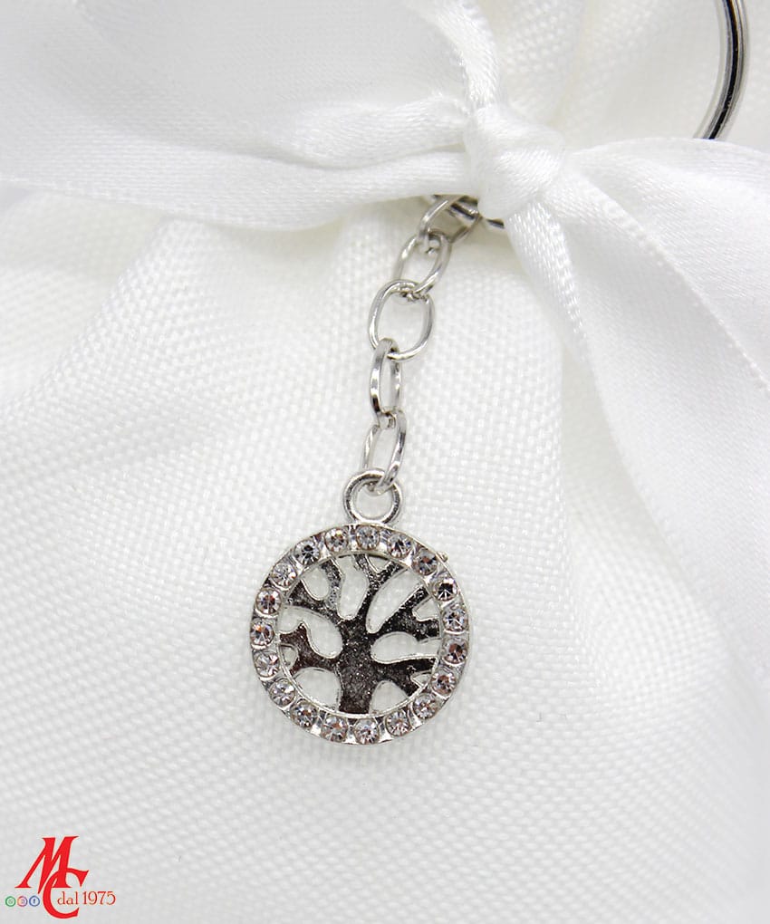 Sacchettino Bianco – Portachiavi Albero della Vita con Strass