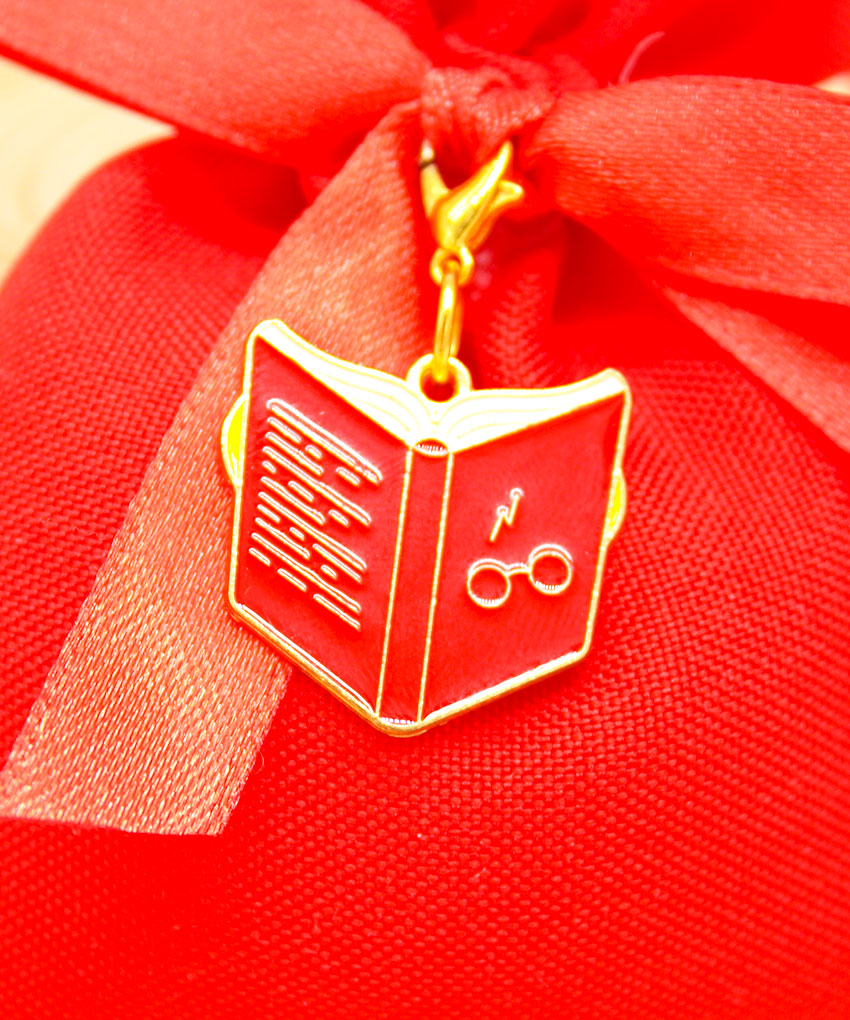 K241 – SACCHETTINO ROSSO CON CHARMS LIBRO LAUREA – Bomboniera Completa di Confezione