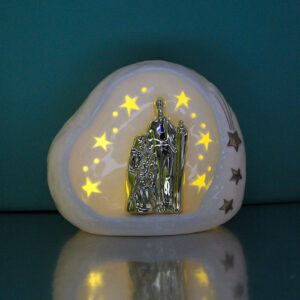 Questa Sacra Famiglia in porcellana con luce LED unisce eleganza, spiritualità e un tocco moderno, rendendola una proposta ideale per il periodo natalizio.