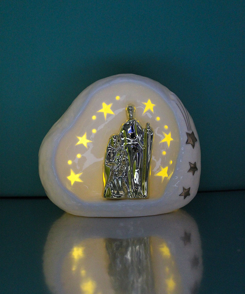 Sacra Famiglia in porcellana con luce LED 14,5×9×h.12 cm