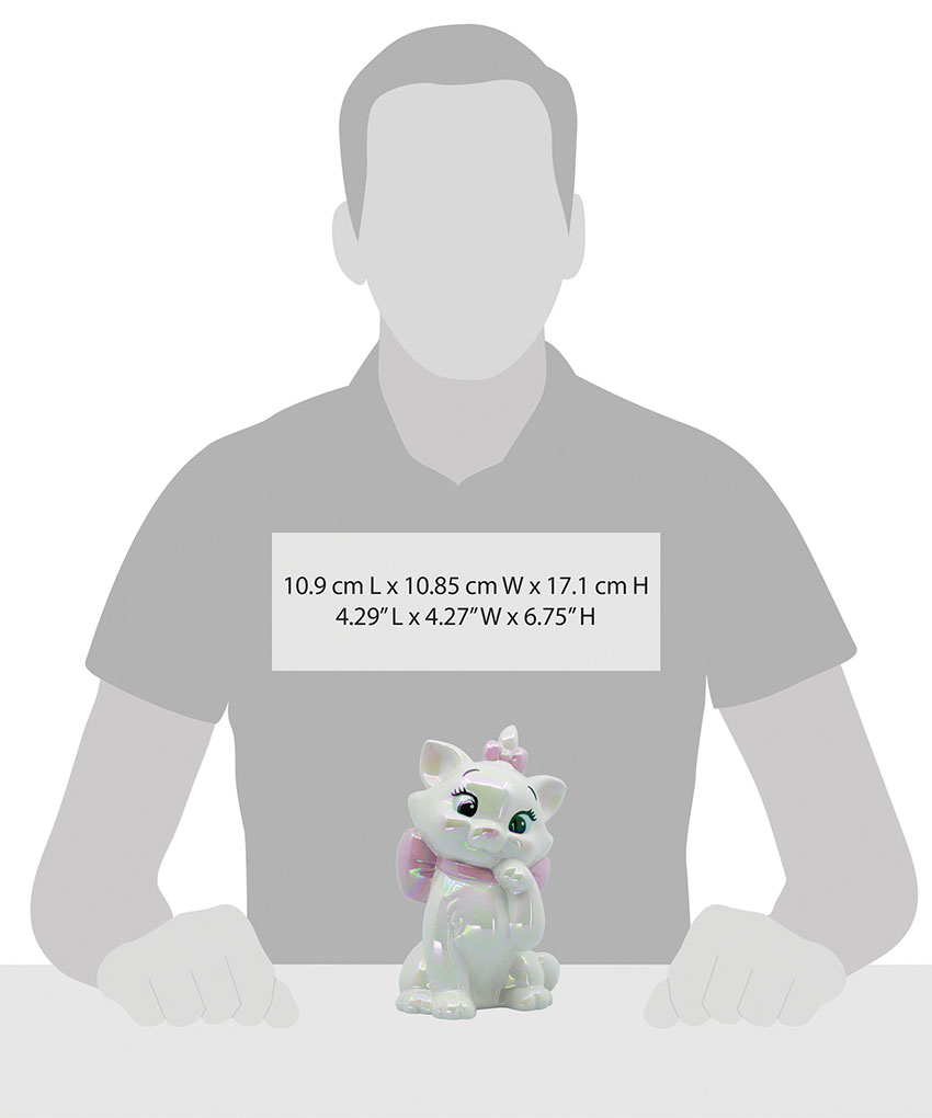 Un raffinato salvadanaio in ceramica raffigurante Marie, protagonista amata dai film Disney, appartenente alla linea Disney Showcase. Interamente dipinto a mano e rifinito con dettagli iridescenti, questo pezzo combina eleganza e fascino da collezione
