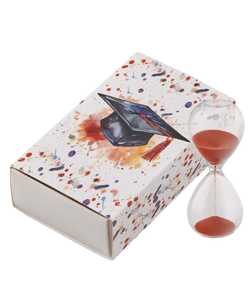Celebra il traguardo della laurea con una bomboniera esclusiva e originale: la Scatolina Degustazione Laurea con Mini Clessidra Personalizzata! Un’idea raffinata e simbolica, perfetta per augurare al neolaureato un futuro brillante, dove ogni secondo conta.