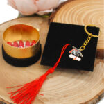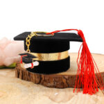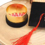 Celebra il traguardo della laurea con questa raffinata scatolina portaconfetti a forma di cappello di laurea (tocco). Perfetta come bomboniera laurea, è un ricordo elegante e simbolico per amici e parenti. Oltre a custodire i classici confetti rossi al cioccolato, include un portachiavi cappello di laurea, un pratico e originale souvenir del giorno speciale.