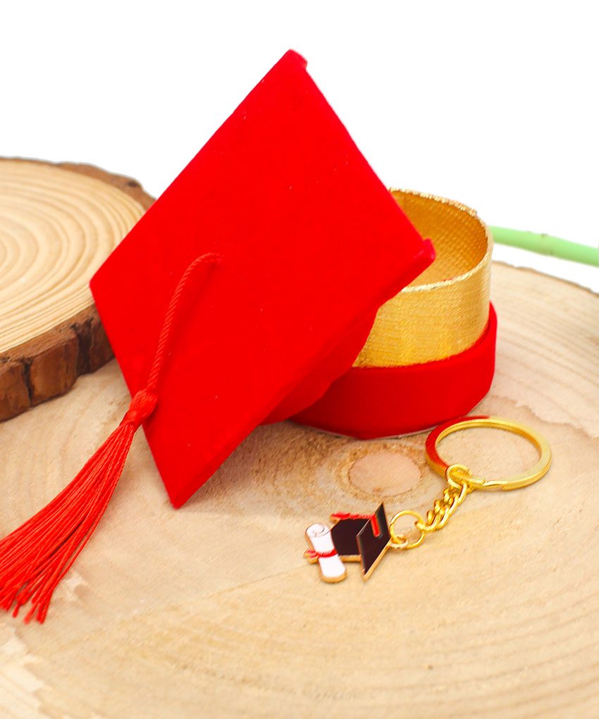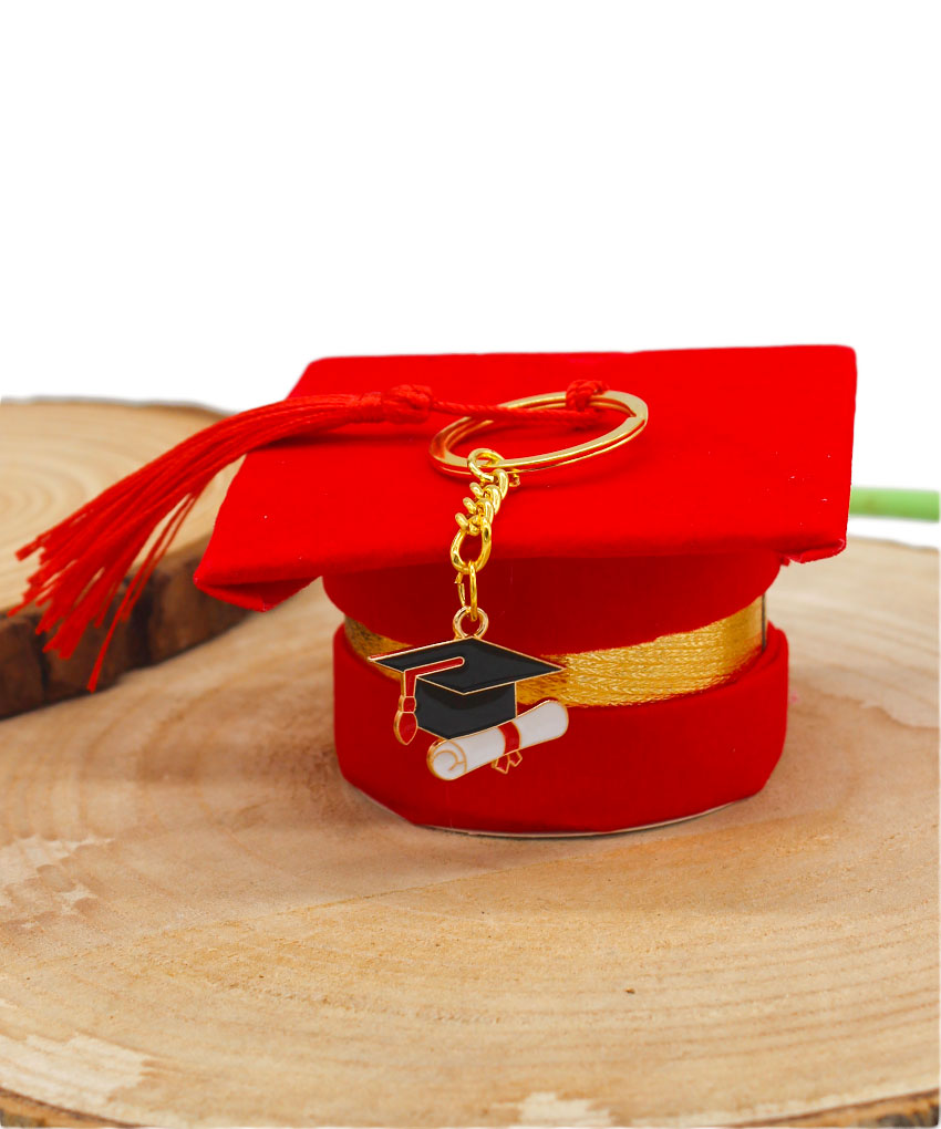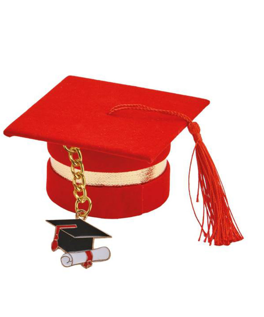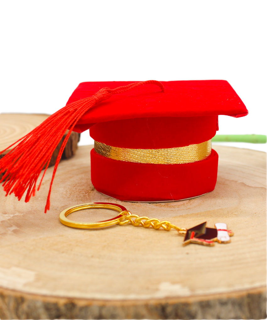 Celebra il traguardo della laurea con questa raffinata scatolina portaconfetti a forma di cappello di laurea (tocco). Perfetta come bomboniera laurea, è un ricordo elegante e simbolico per amici e parenti. Oltre a custodire i classici confetti rossi al cioccolato, include un portachiavi cappello di laurea, un pratico e originale souvenir del giorno speciale.