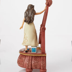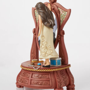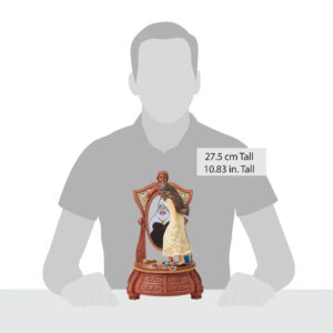 In questa scena incantevole disegnata da Jim Shore, Ursula assume la sua forma umana di Vanessa e si contempla in uno specchio che rivela la sua vera identità di strega del mare. L’effetto è quello di un momento di trasformazione: la bellezza esteriore nasconde il suo lato più oscuro. Dettagli ricchi, design folk-art e una base scolpita rendono questa statuetta un pezzo magnetico e da collezione per gli amanti de La Sirenetta.