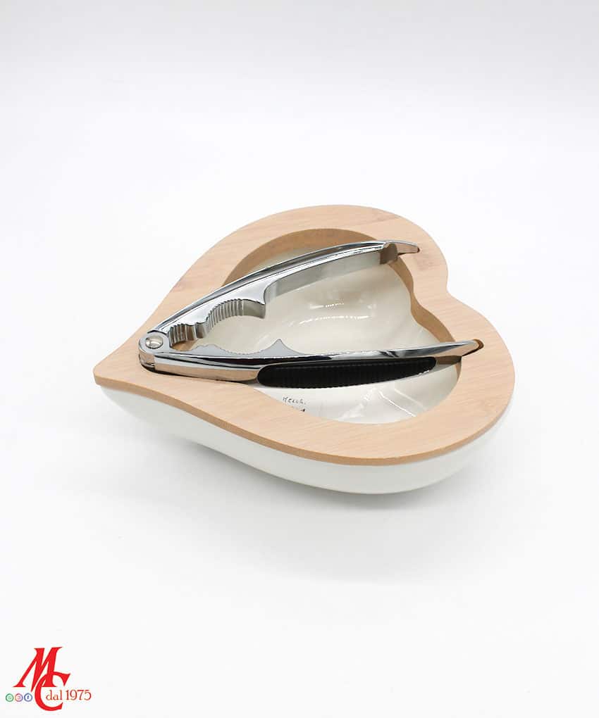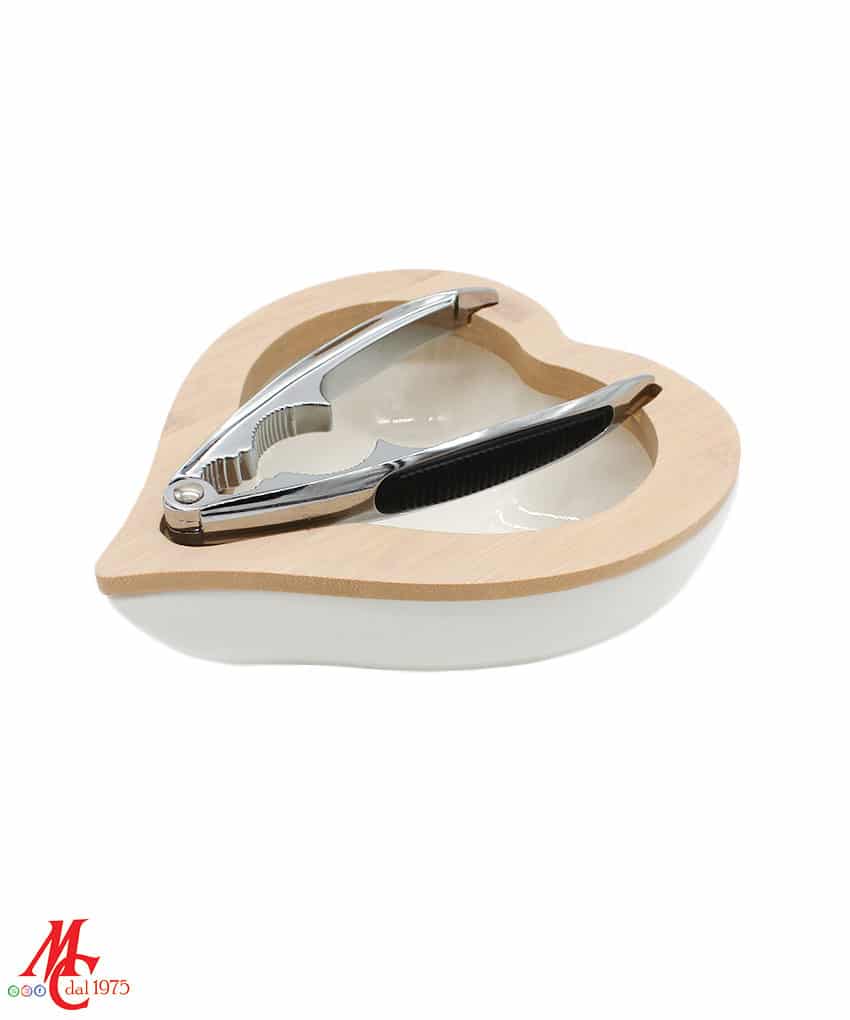 Bomboniera – Schiaccianoci Con Ciotola Cuore – Porcellana e Bamboo