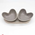 Set 2 Ciotole Cuore Porcellana Grigio e Legno Naturale