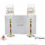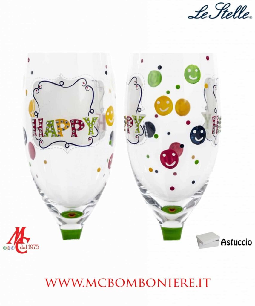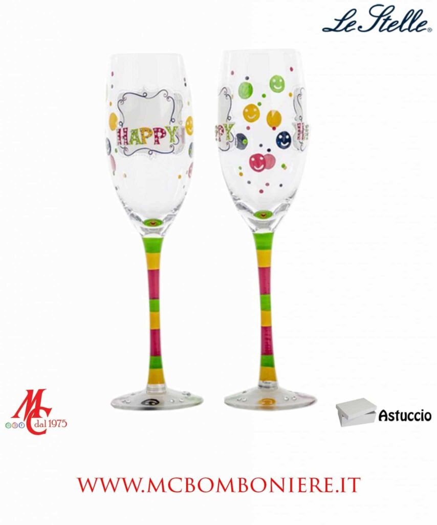Set 2 Flute Multi-color – HAPPY – completo con Elegante Astuccio da Bomboniera fondo e coperchio