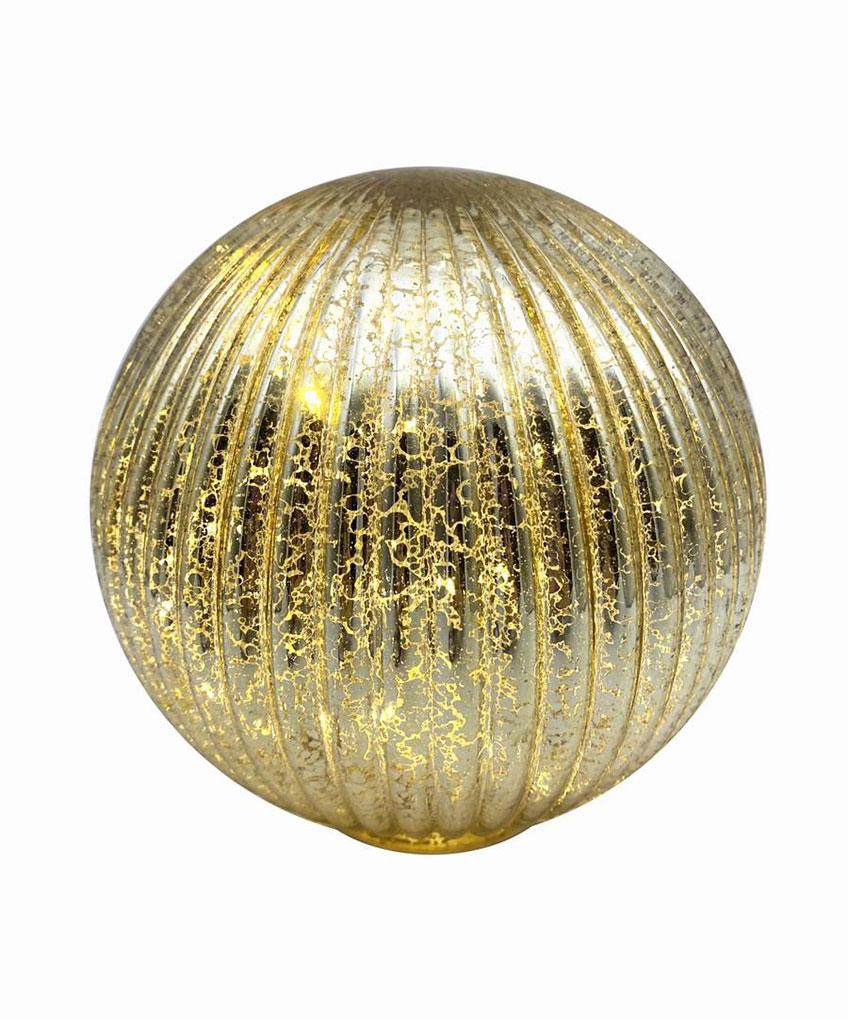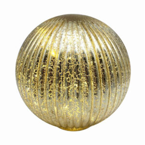 Sfera Natalizia in Vetro Oro con Luci – d.14×h.13,5 cm