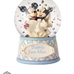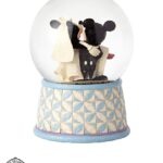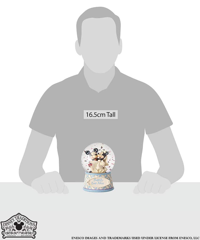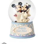 Bellissima palla di neve del matrimonio da sogno di Topolino e Minnie, insieme e felici per sempre. Agitalo per congratularti e copri la coppia con coriandoli colorati. Progettato dal pluripremiato artista e scultore Jim Shore per la collezione Disney Traditions.
