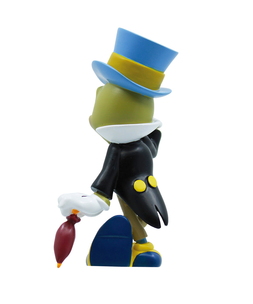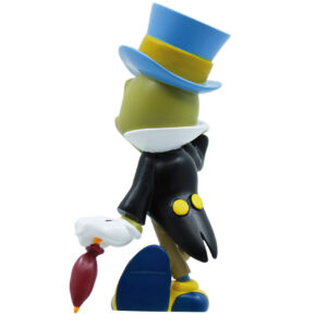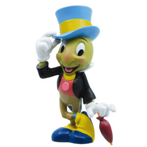 Jiminy è ritratto nel suo classico gesto con cappello e ombrello, in una posa elegante che rende questa statuetta perfetta per collezionisti Disney e appassionati del mondo animato. Il design compatto permette di inserirla con stile su mensole, scrivanie o nelle vetrine della tua collezione.