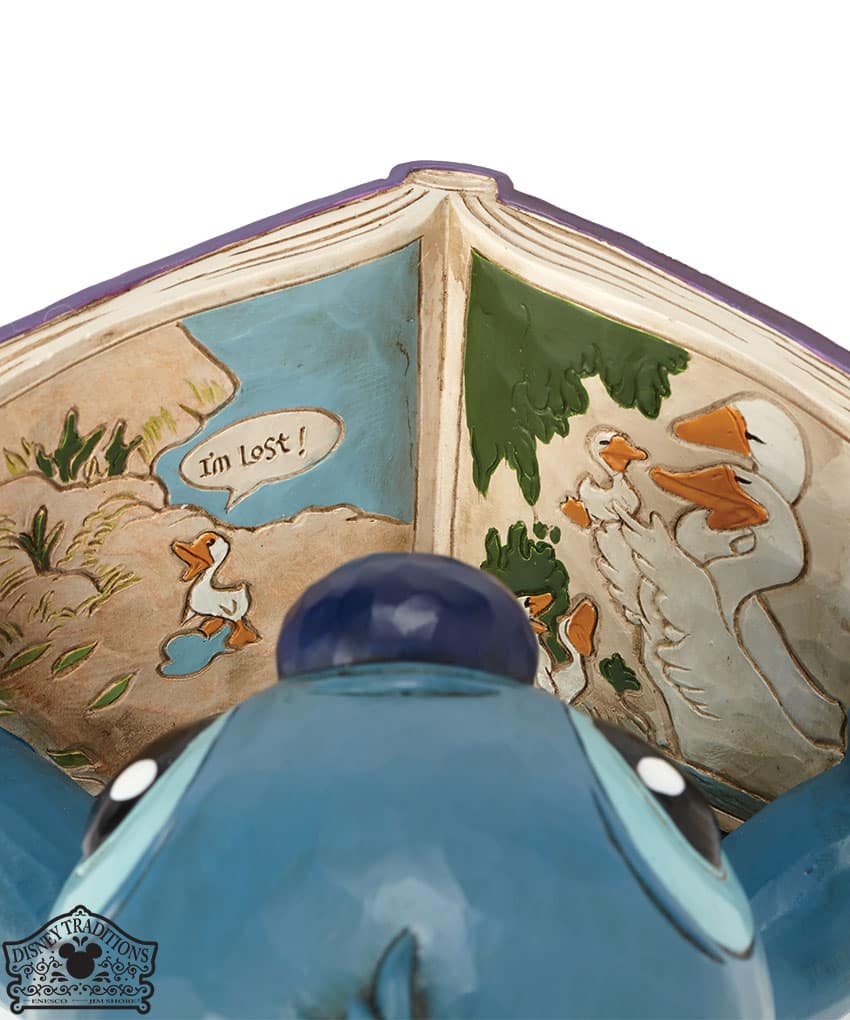 In Lilo e Stitch, Stitch trova il vero significato di famiglia nelle pagine de Il brutto anatroccolo. Dipinta e intagliata a mano, questa statuetta di 15 cm cattura questa scena emozionante con dettagli squisiti.