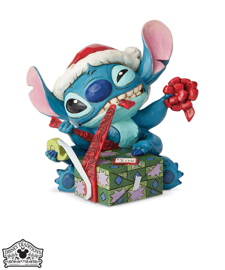 Stitch mostra il suo lato gentile con questa figura, mentre confeziona un regalo di Natale per Lilo. Progettato dal pluripremiato artista e scultore Jim Shore per il marchio Disney Traditions.