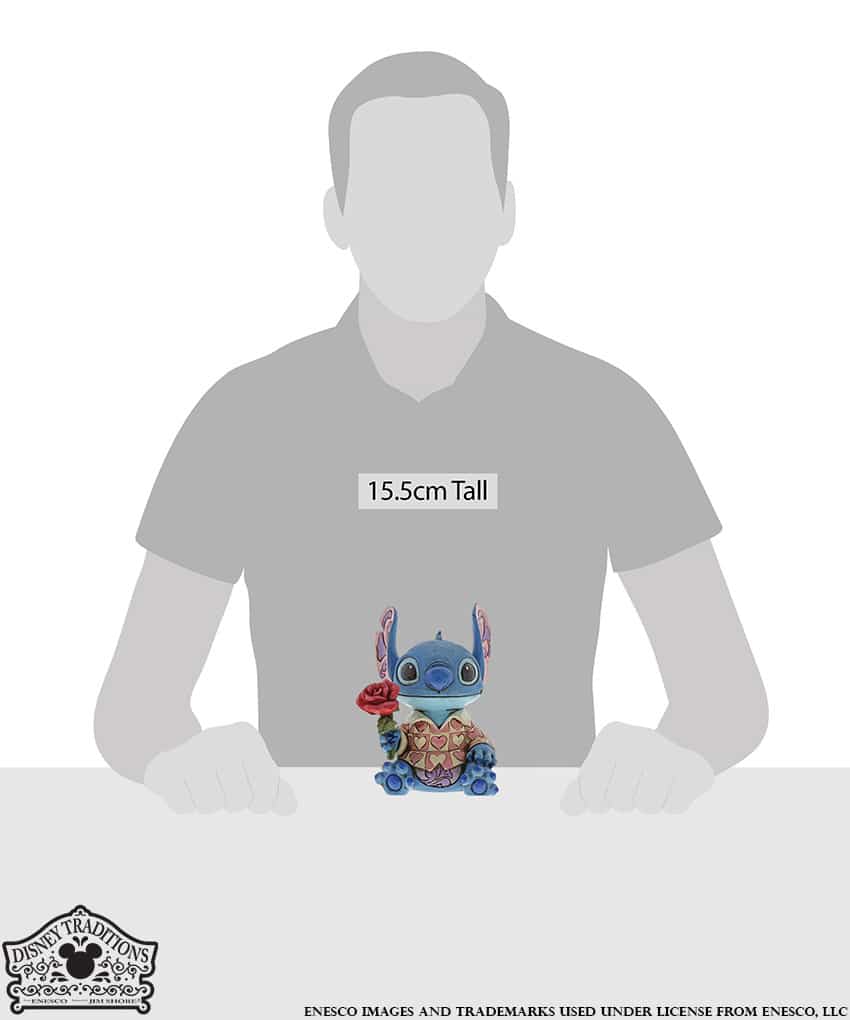 Stitch si è trasformato in un cittadino modello di cui Lilo sarebbe orgogliosa! Disegnato da Jim Shore, l’adorabile alieno indossa una camicia a forma di cuore mentre offre una singola rosa rossa. Stitch è un grande regalo per ogni opportunità che ti si presenta.