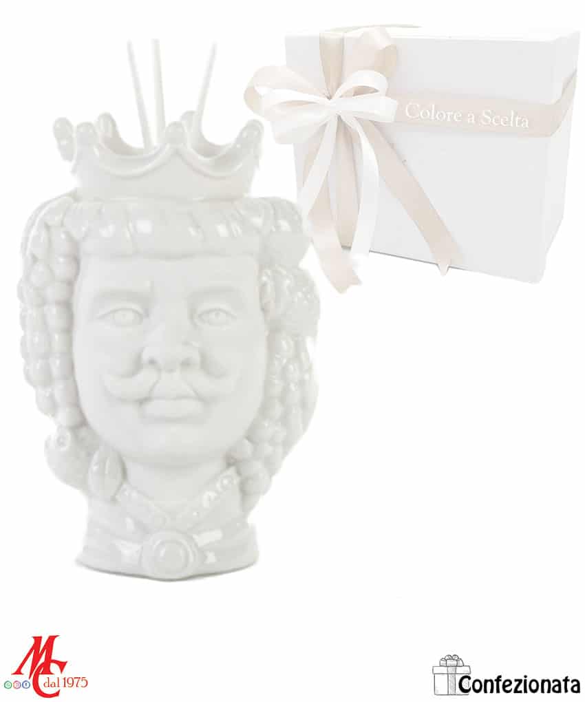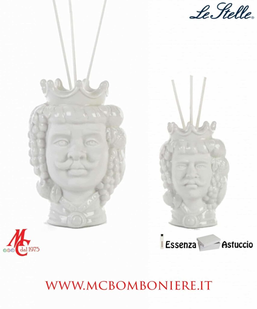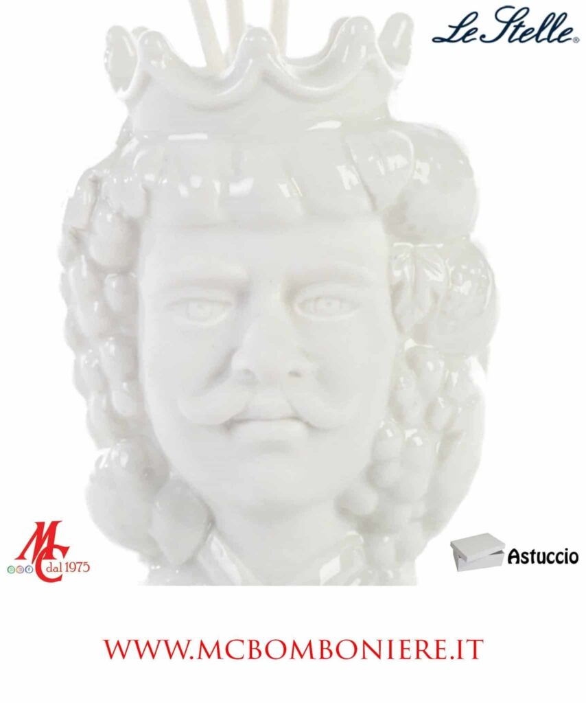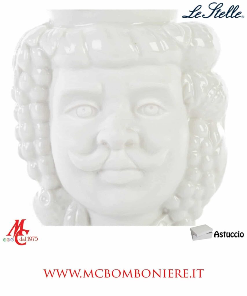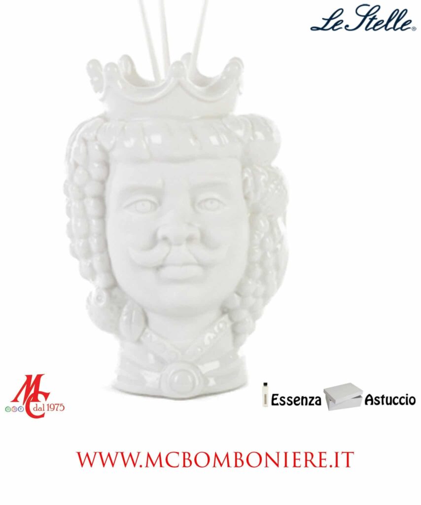 Bomboniera Profumatore – Stile Siciliano – Testa di Moro Uomo – Total White – Faccia in Porcellana biscuit e lucida nella restante parte – Completo di Astuccio ed Essenza Profumata