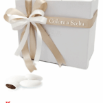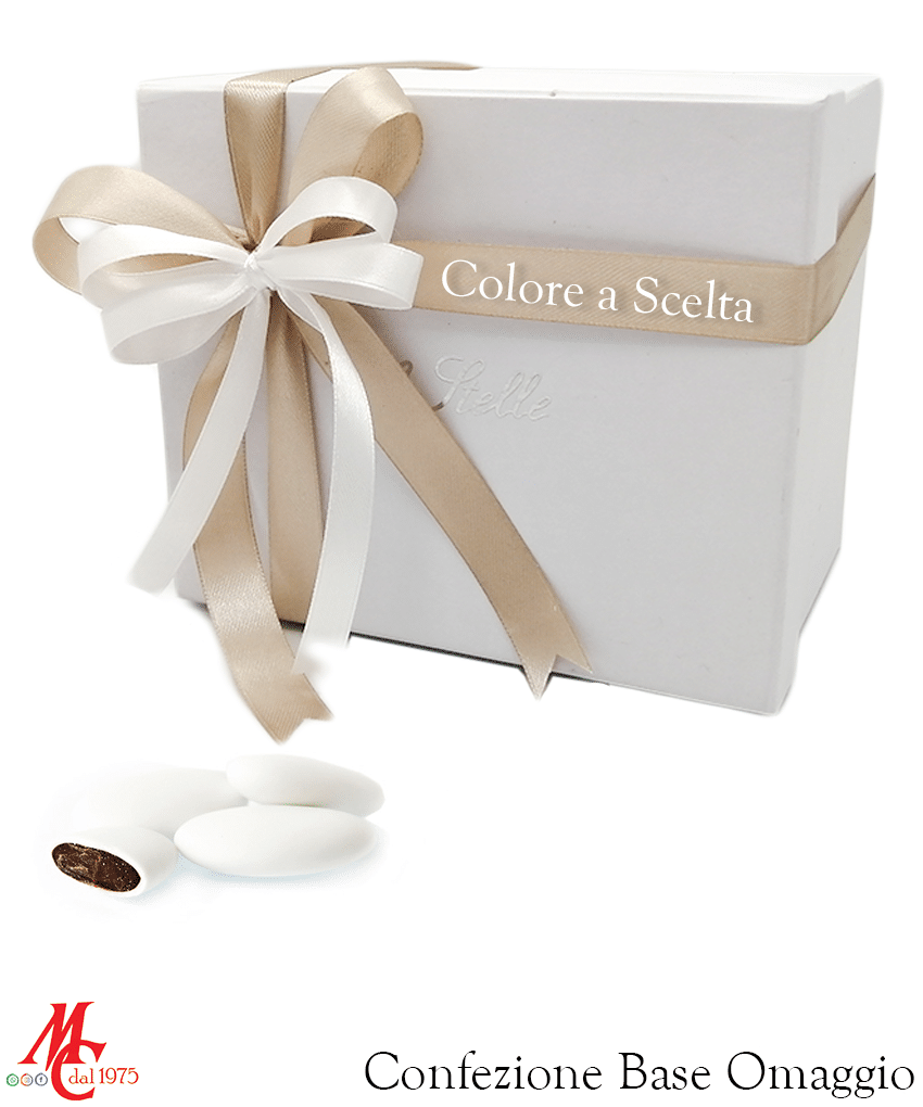 • 5 confetti Bianchi al Cioccolato inseriti in tulle con nastrino di raso ( stesso colore confezione esterna)