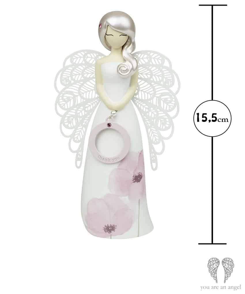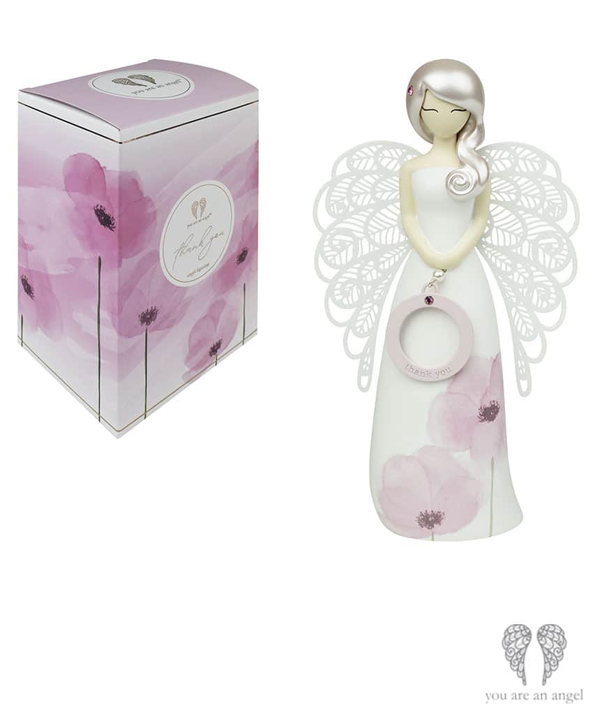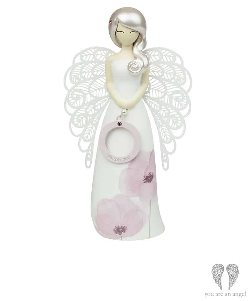 Le figure di You Are An Angel sono il regalo perfetto per far sapere a una persona cara quanto siano speciali e importanti per noi. Questo angelo ha ali in metallo argentato, un ciondolo a cuore in metallo su cui è incisa la sensazione “Thank You”. Ogni angelo è avvolto in una bellissima confezione regalo disegnata con dettagli in foglia oro. Perfetto come regalo e decorazione per la casa.