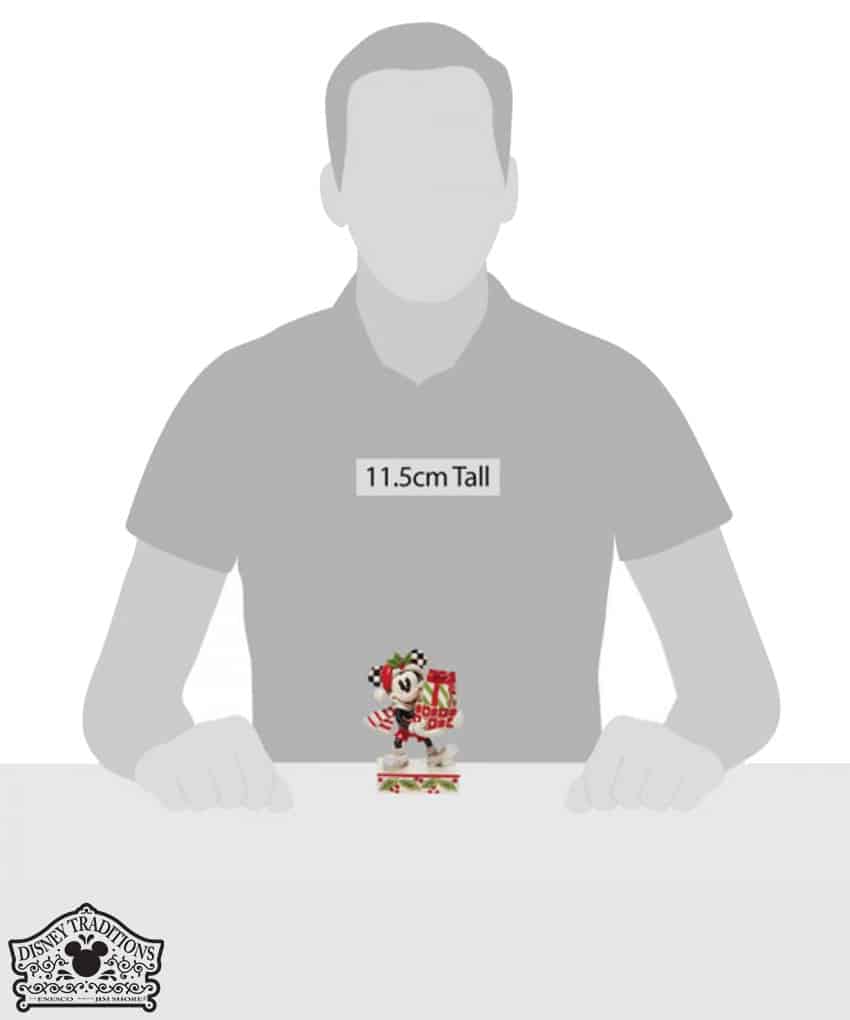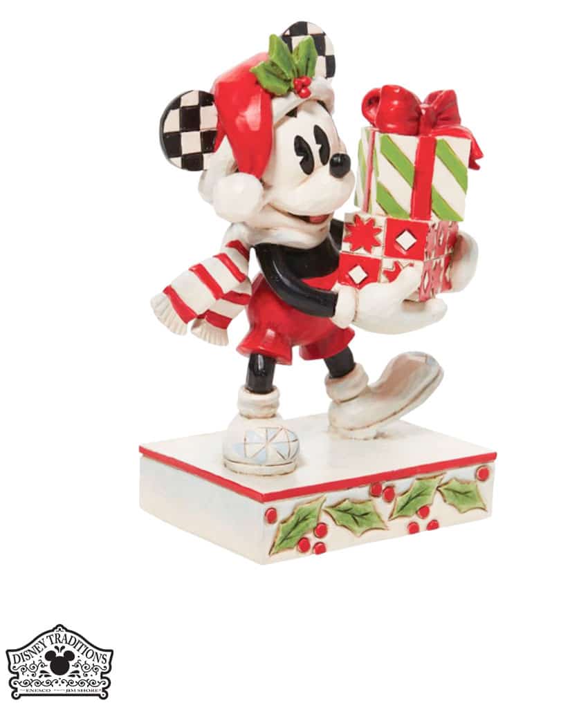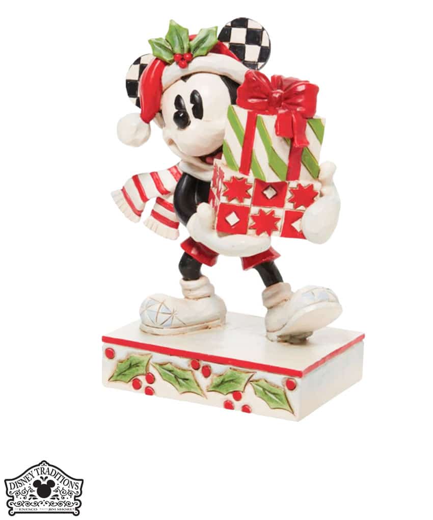 Indossando una sciarpa a righe di zucchero d’orzo, un cappello natalizio adornato con agrifoglio e portando regali imponenti, Topolino indossa un sorriso amichevole. Progettato dal pluripremiato artista e scultore Jim Shore per il marchio Disney Traditions.