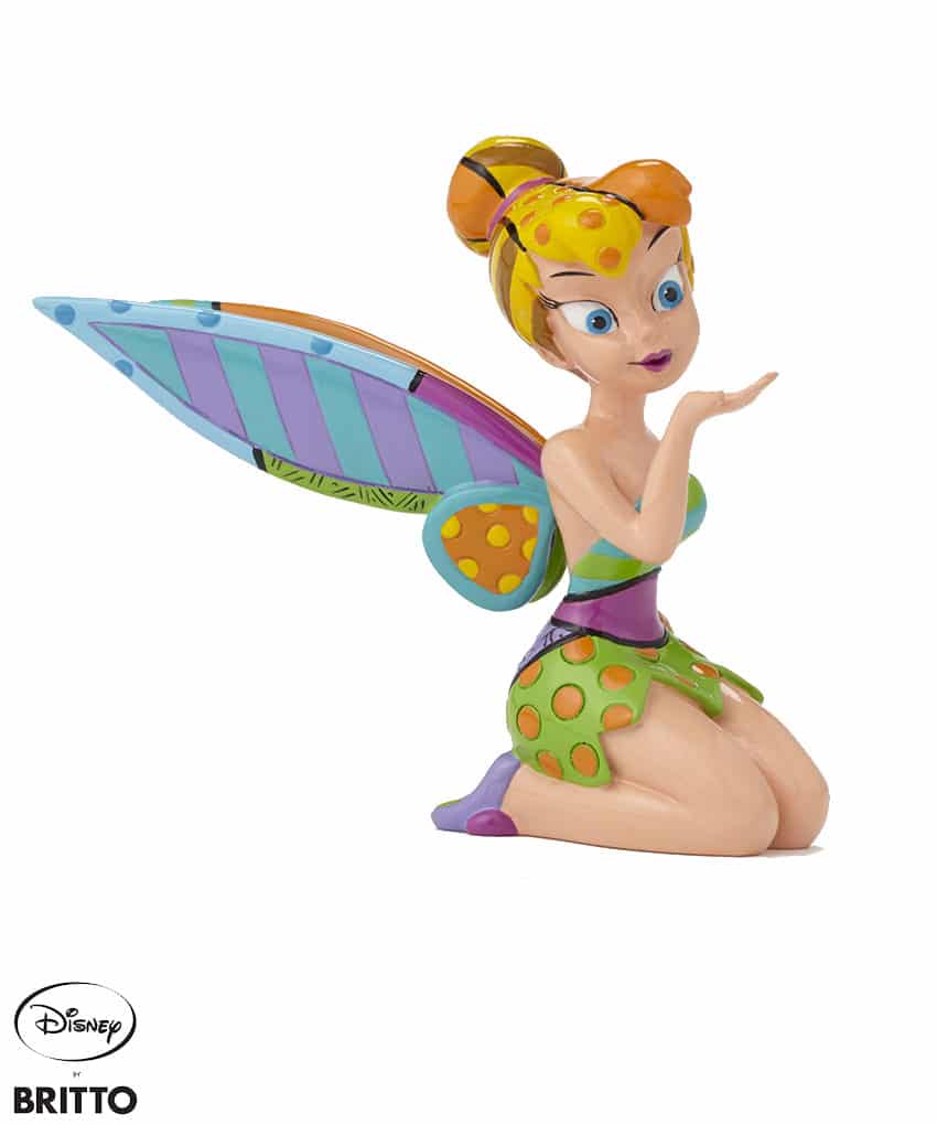 Questa vibrante figura di Trilli mostra la spalla di Peter Pan inginocchiata per diffondere un po ‘di magia con il suo goblindust. Ogni personaggio Disney by Britto, decorato in stile pop art dall’artista internazionale Romero Britto, è realizzato in resina dipinta a mano con finitura laccata e lucida. Confezionato in una confezione regalo.