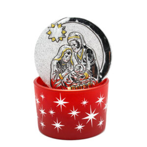 Il Vasetto Candela Profumata Presepe con coperchio argentato è un’elegante decorazione natalizia pensata per creare un’atmosfera calda e raffinata. Realizzato in vetro e decorato con un delicato disegno del Presepe, racchiude una candela da 200 g che diffonde una fragranza dolce e avvolgente, ideale per accompagnare i momenti più speciali delle festività.