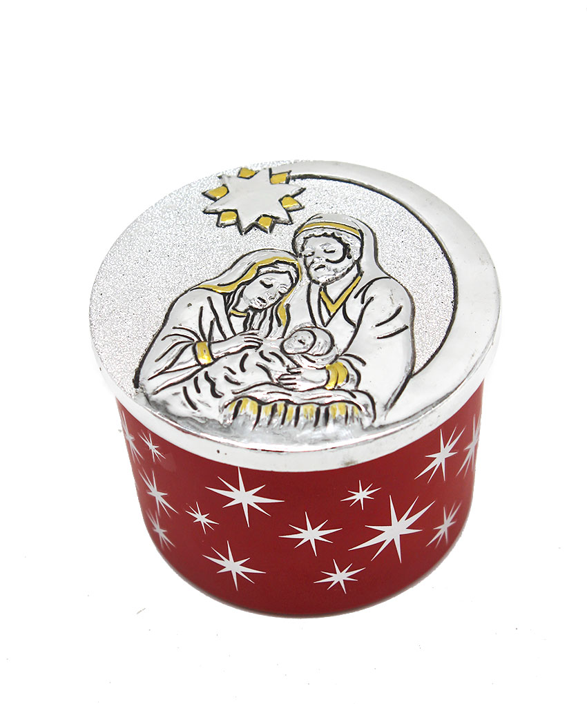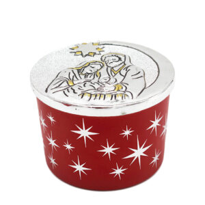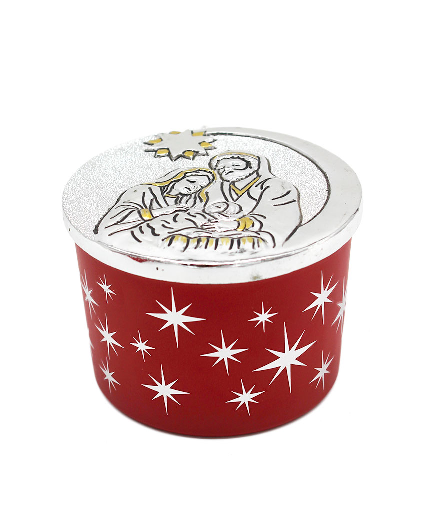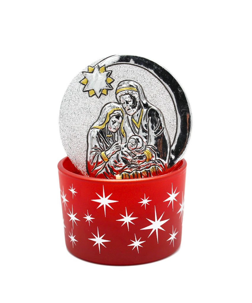 VASETTO CANDELA PROFUMATA CON COPERCHIO ARGENTATO – PRESEPE